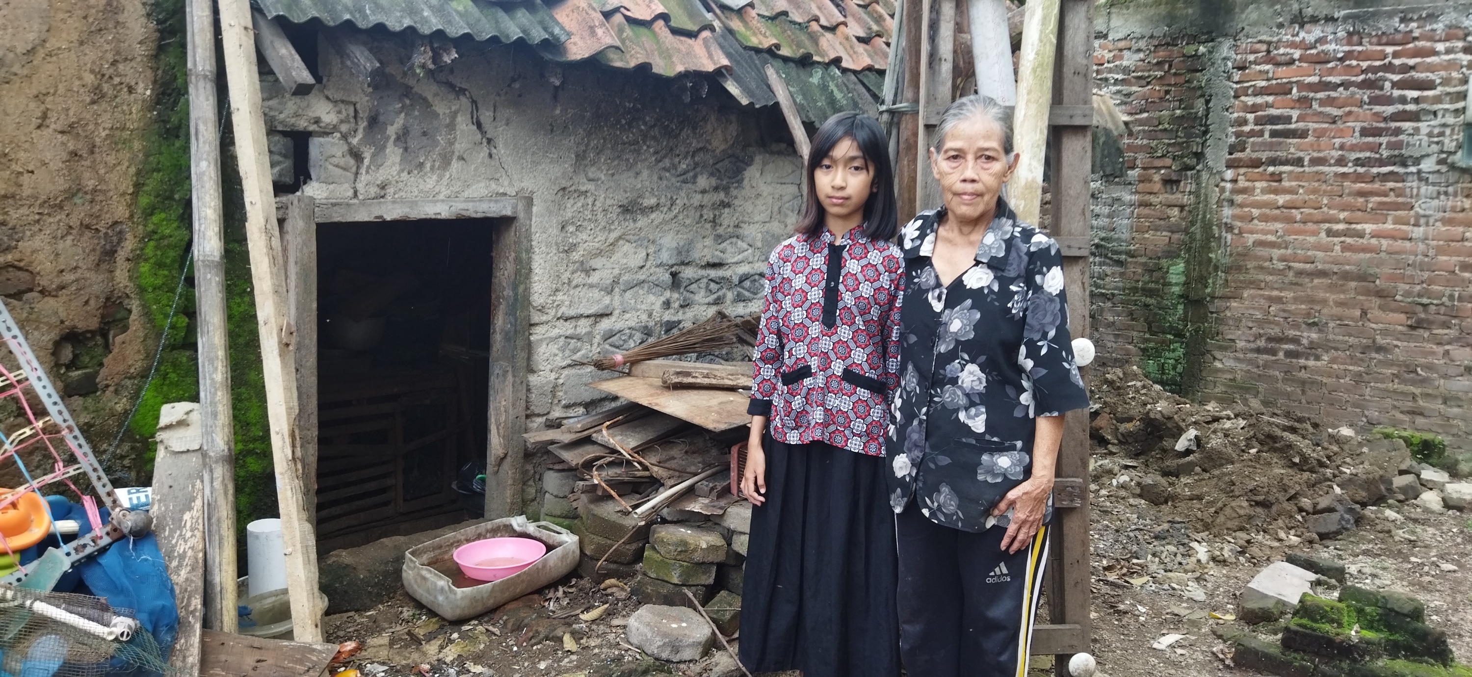 Mak Onarsih dan Cucunya Terancam Tertimpa Runtuhan Atap Rumahnya