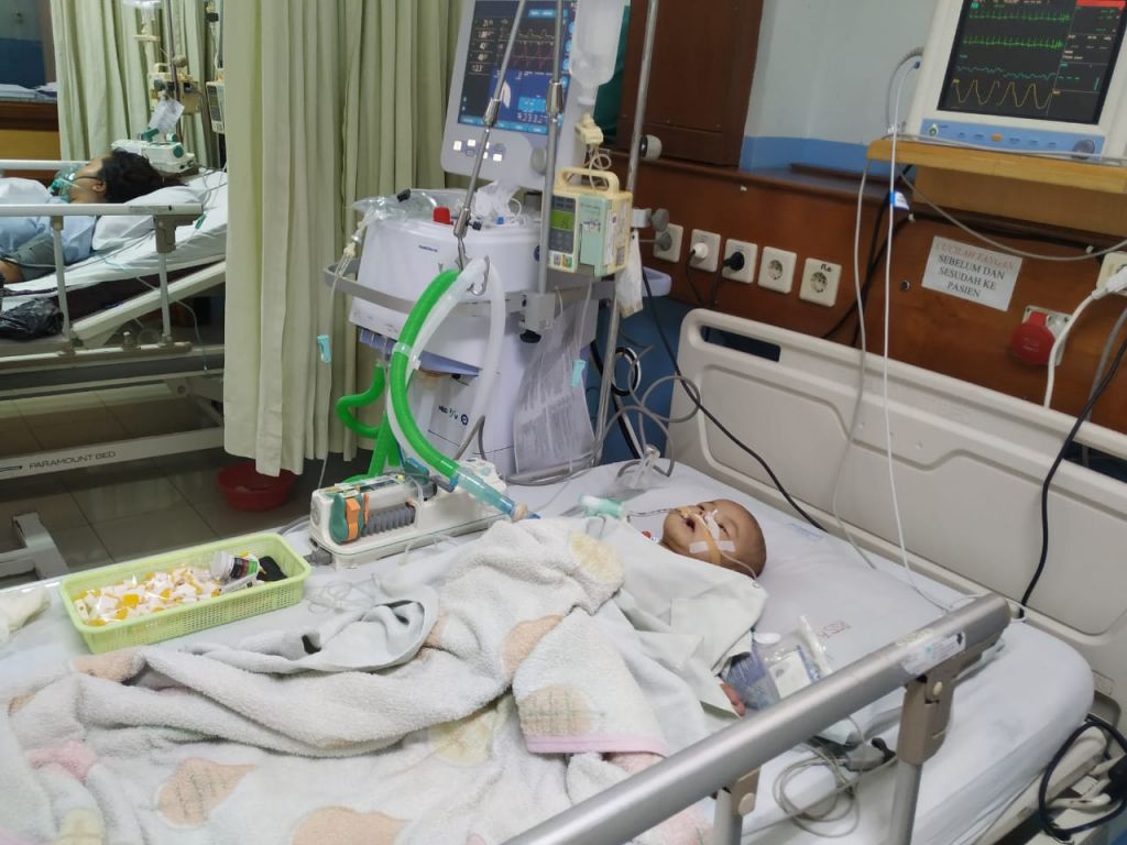 Perkenalkan, bayi lucu ini bernama Roisul Fata. Roisul baru berusia 5 bulan, dan sekecil itu harus menderita gagal napas berat (shock respiratory). Saat ini Roisul berada di ruang NICU lantai 4 RS Santo Antonius, Pontianak, Kalimantan Barat. Lihatlah alat-alat yang mengelilingi tubuh mungil ini.