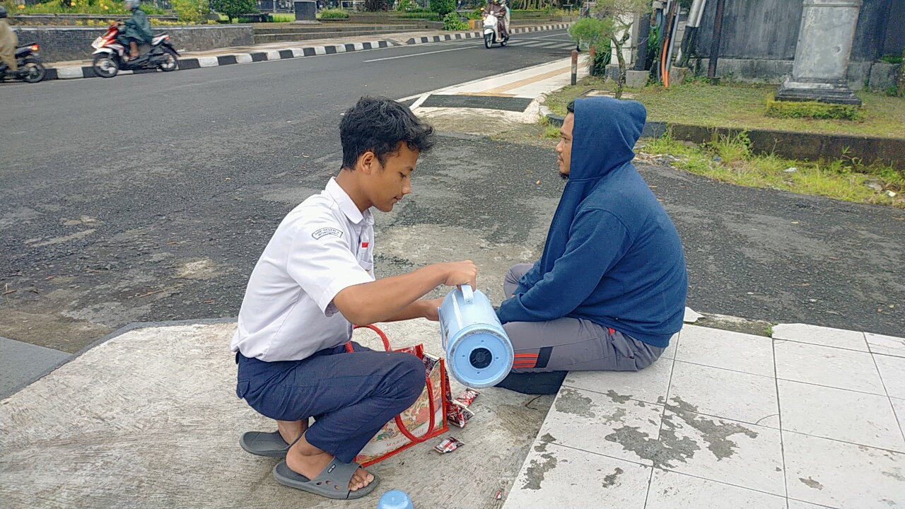 Contohnya seperti Farel ini, dia sudah tak punya ayah ibu, untuk bisa terus sekolah harus sambil bekerja mencari uang dengan berjualan kopi keliling, itu pun dari 1 gelas yang laku hanya dapat 3rb.