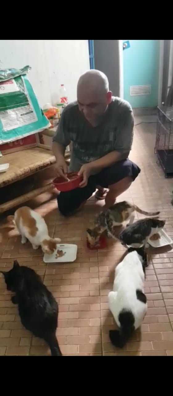 Pakde heri sering membantu kucing-kucing yang terlantar di jalanan bahkan sampai ada orang yang terga membuang kucingnya dan entah kenapa orang-orang pada suka buang kucingnya di deket rumah pakde heri. Pakde heri setiap hari harus memberikan makan kucing dan sudah menjadi kebiasaan pakde setiap pagi, siang dan sore hari. Selain itu juga pakde harus membersihkan tempat makan kucing, kandang kucing, kotoran kucing hingga membersihkan kucingnya.