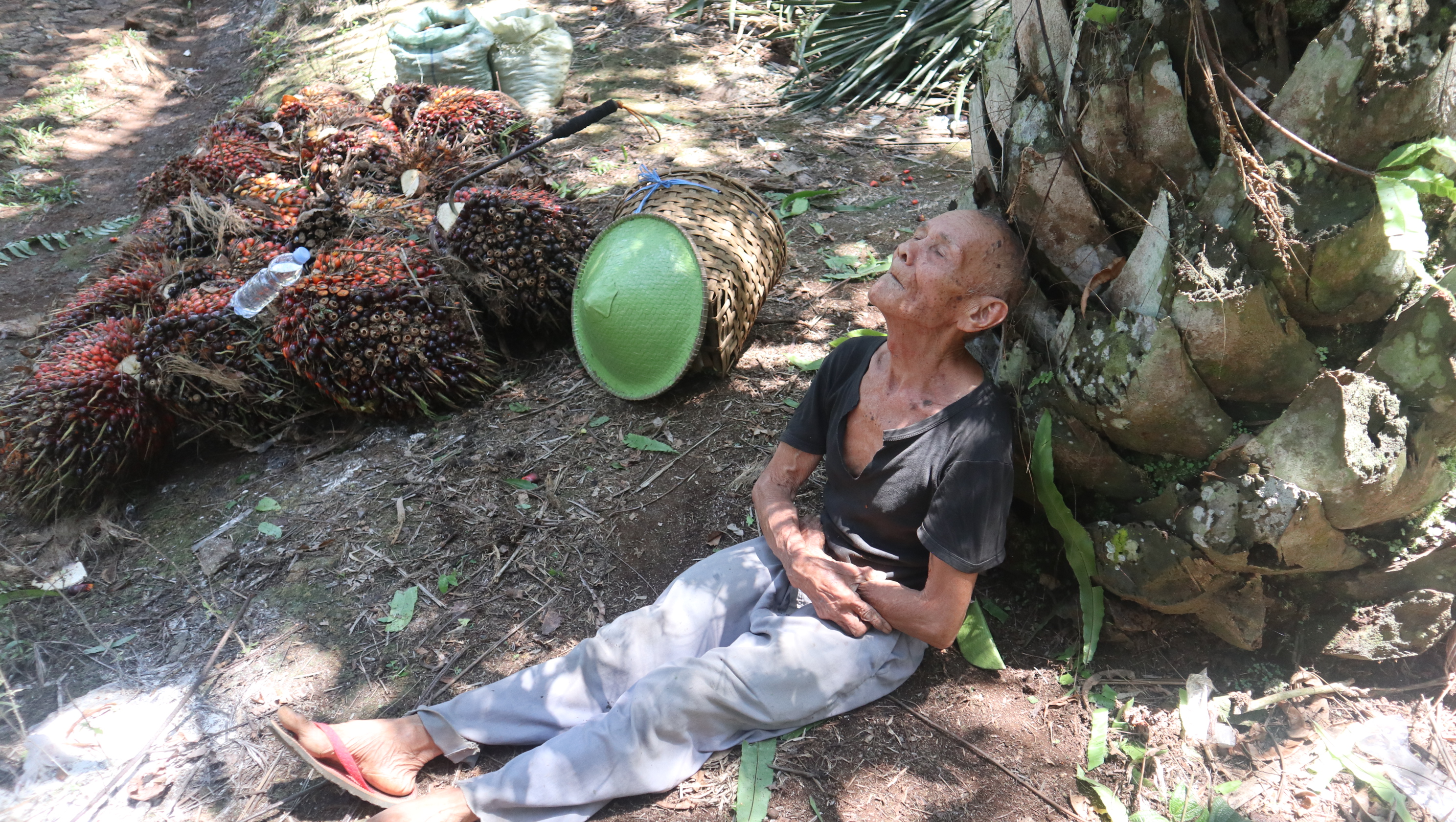 Abah Dubin (92) adalah nama pria tua ini. Ia terpaksa bekerja sebagai buruh sawit demi menyambung hidup. Padahal tubuhnya sudah renta dan tidak bisa melakukan pekerjaan berat.