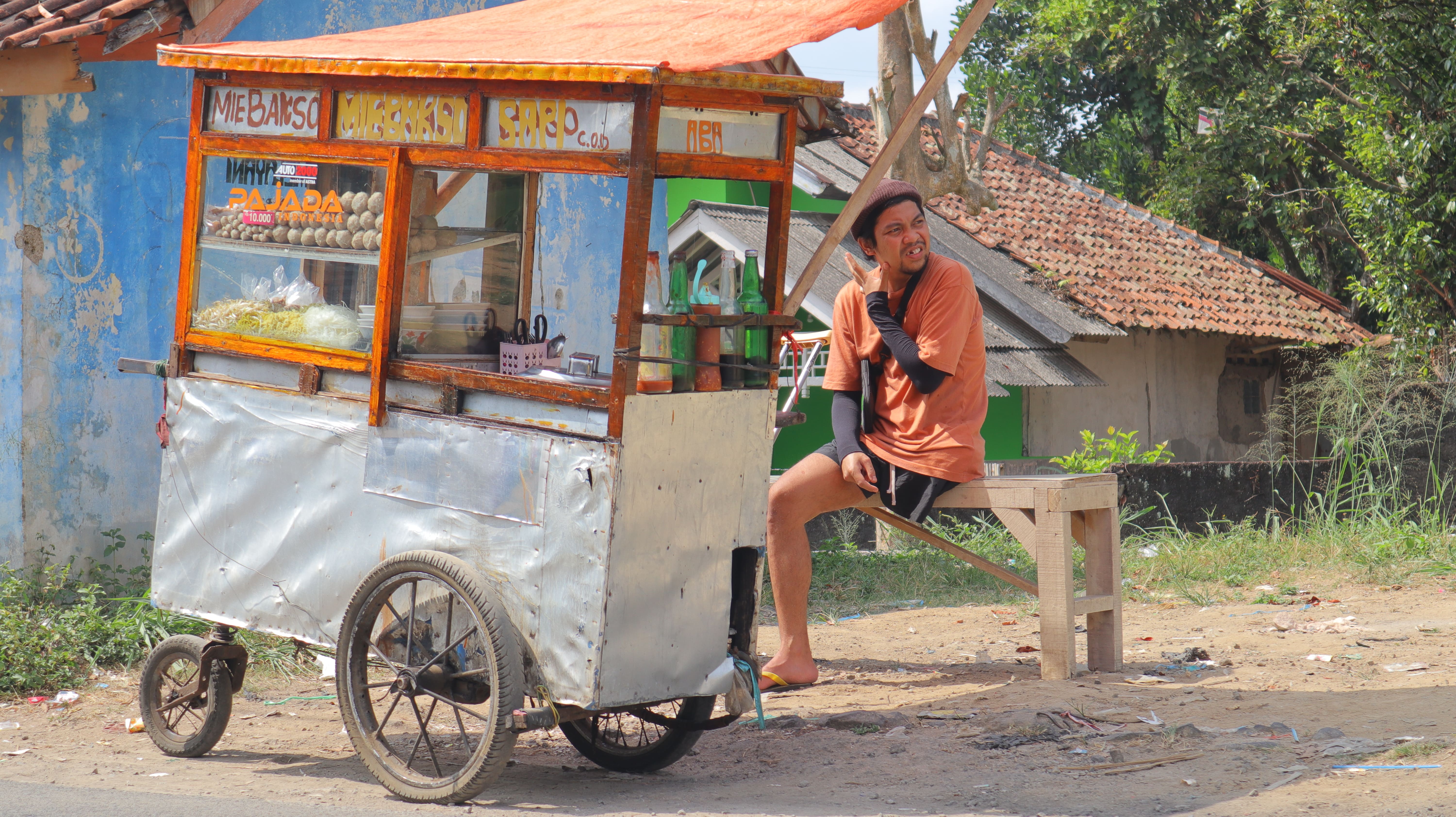 Terik matahari tampak kurang bersahabat siang itu. Cucuran keringat seketika membasahi tubuh seorang tukang bakso yang tampak sesekali mengusap keningnya sembari melihat sekeliling untuk mencari pembeli.