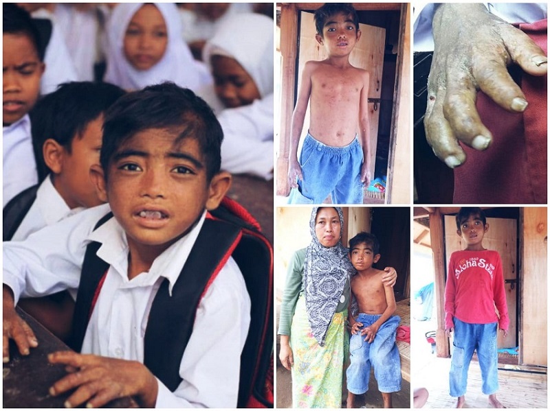 Rifki saat ini duduk dikelas 3 sekolah dasar, ia tinggal bersama ibunya di Dusun Sumur Pande Daya, Desa Sesait, Kayangan, Lombok Utara. Kondisi Rifki saat ini sangat memprihatinkan, wajah, badan, tangan hingga kakinya dipenuhi luka seperti cacar.