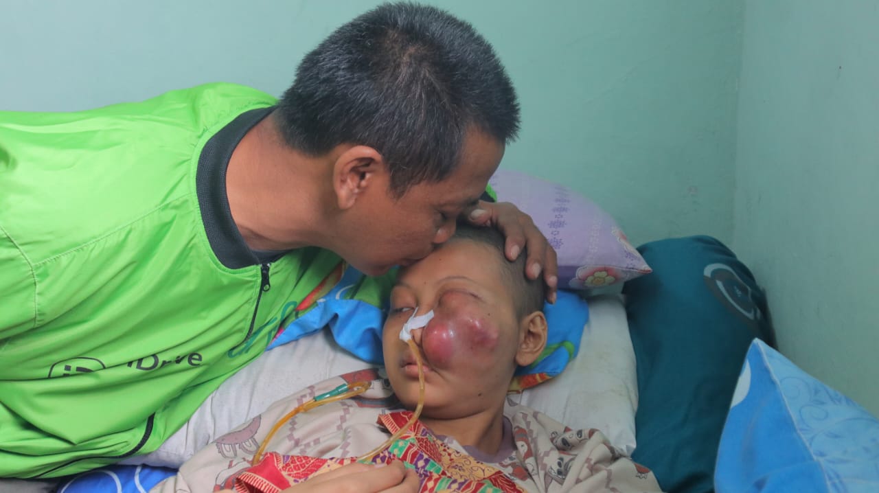 Pak Gusnadi (50) seorang ojek online yang tengah berjuang di teriknya hari ini. Bukan panas hari yang mengganggu pikirannya saat ini, bukan juga pesanan yang tak kunjung menghampiri. Lebih dari itu, hatinya risau dan gundah memikirkan anak kesayangannya yang sedang mengidap tumor wajah di rumah.
