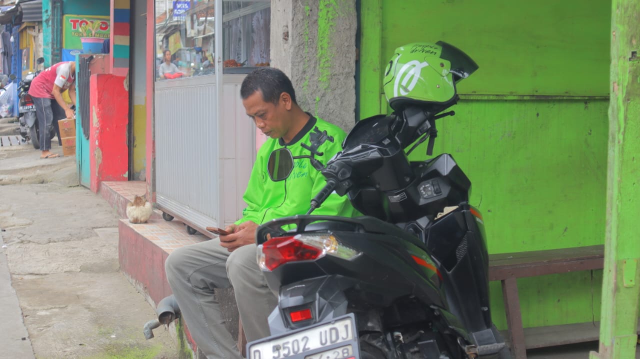 Langit hari itu terlihat cerah, terik mentari menyorot dengan tegas. Namun, ada yang mendung di tengah cerahnya langit hari ini. Nampak pandangan kosong kebingungan terlihat di wajah seorang ojek online yang sedang menunggu pesanan.