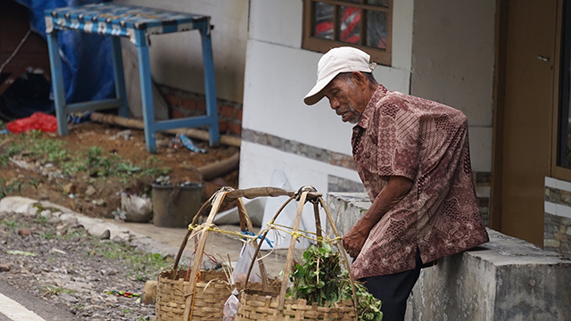 "Sambil menahan rasa sakit di punggungnya, Abah hanya bisa terus berjalan menyusuri jalanan terjal. Dalam setiap langkahnya yang tergopoh-gopoh, Abah hanya berharap sayur-sayurnya laku terjual dan bisa makan hari ini."