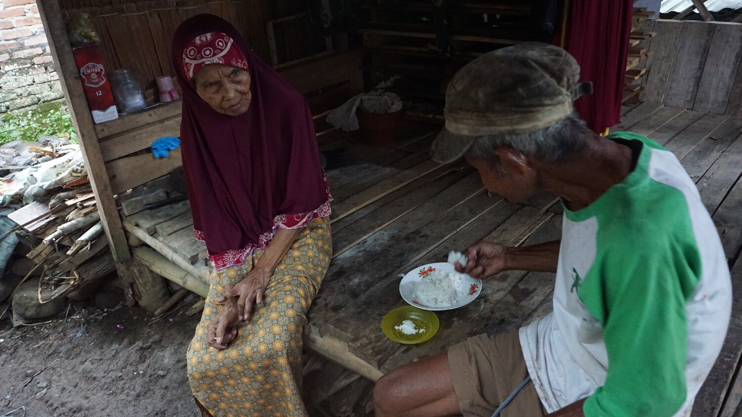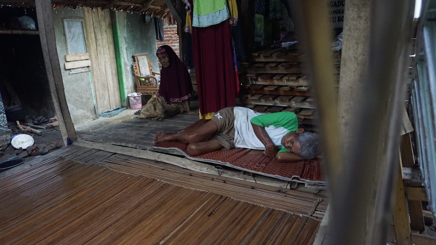 Mak Niah (82), hidup hanya dengan adik bungsunya Abah Karli yang sama-sama sudah lansia disebuah gubuk pemberian warga. Tidur hanya dengan beralaskan tikar seadanya dan terbuka, karena kondisi Emak yang sudah sangat tua Emak kini hanya bisa beberes gubuk tempat tinggalnya saja. Aktifitas yang hanya itu-itu saja seperti memasak air dengan tungku kayu dan memasak nasi, hingga hanya duduk termenung menunggu adiknya pulang bekerja sebagai pemulung.