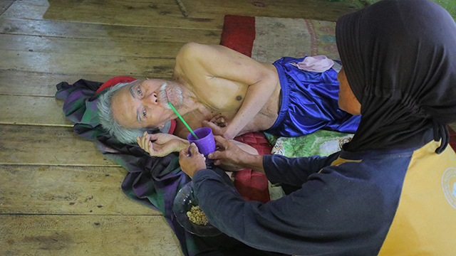 Sejak kecelakaan tragis 15 tahun yang lalu saat menebang pohon pisang pohon yang justru tumbang menimpa tubuhnya, tulang punggungnya mengalami cedera parah. Sarafnya terjepit, sejak hari itu, tubuhnya lumpuh dan kehidupannya bergantung sepenuhnya pada sang istri.