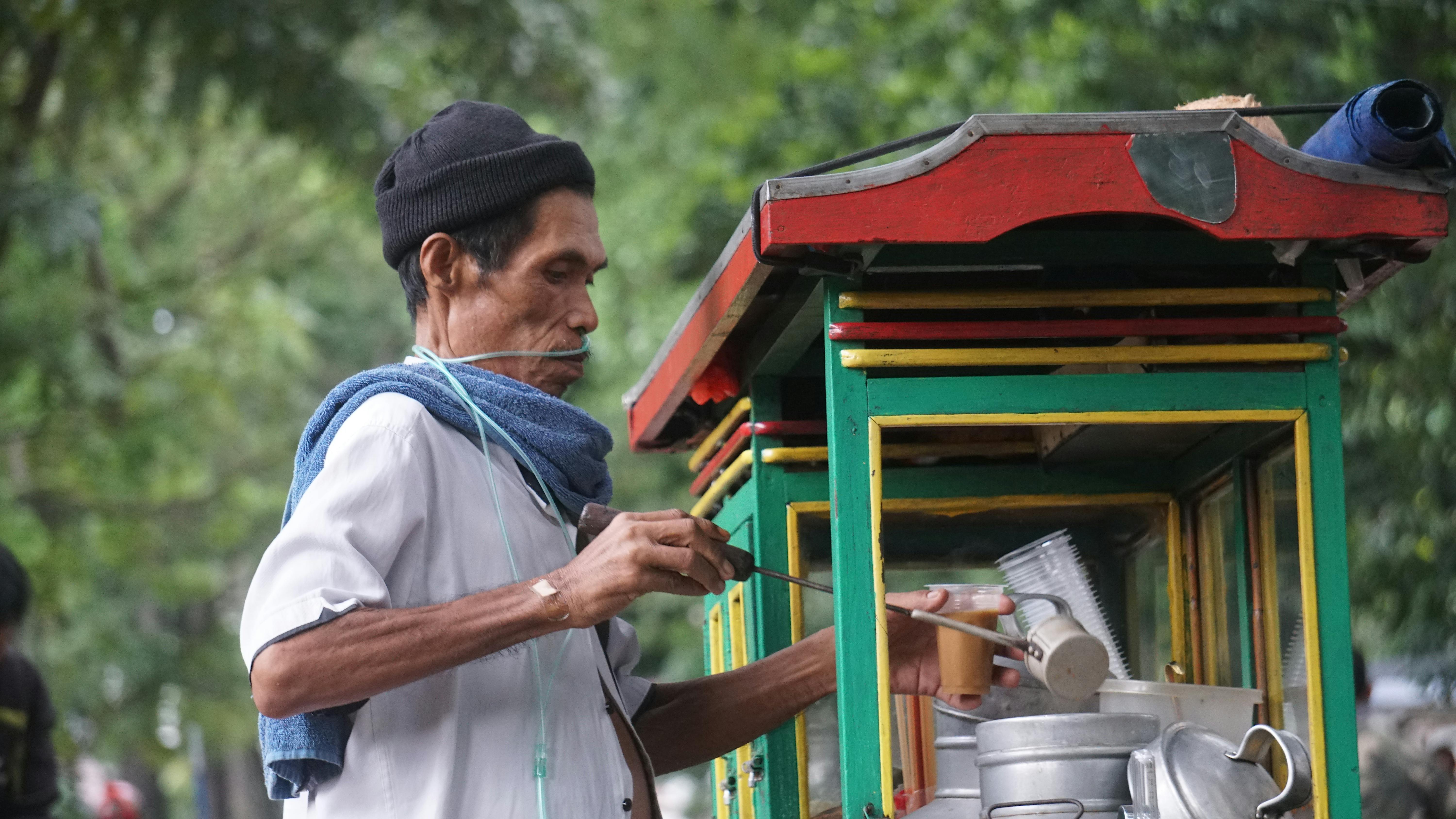 Setiap pagi, sebelum matahari benar-benar naik, Pak Sunaryat sudah bersiap. Ia menata gerobak bajigurnya, lalu memastikan satu benda yang tak pernah boleh tertinggal yaitu tabung oksigen. Selang kecil yang menempel di hidungnya bukanlah aksesori, melainkan kebutuhan. Tanpanya, napasnya bisa terhenti kapan saja.