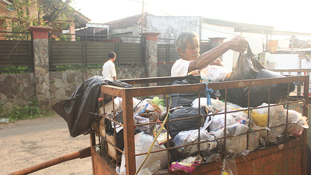 Pagi buta Ia sudah bergegas menarik gerobak sampahnya menyusuri gang sempit dari rumah kerumah, meski sering berhenti dan wajah meringis menahan sakit.