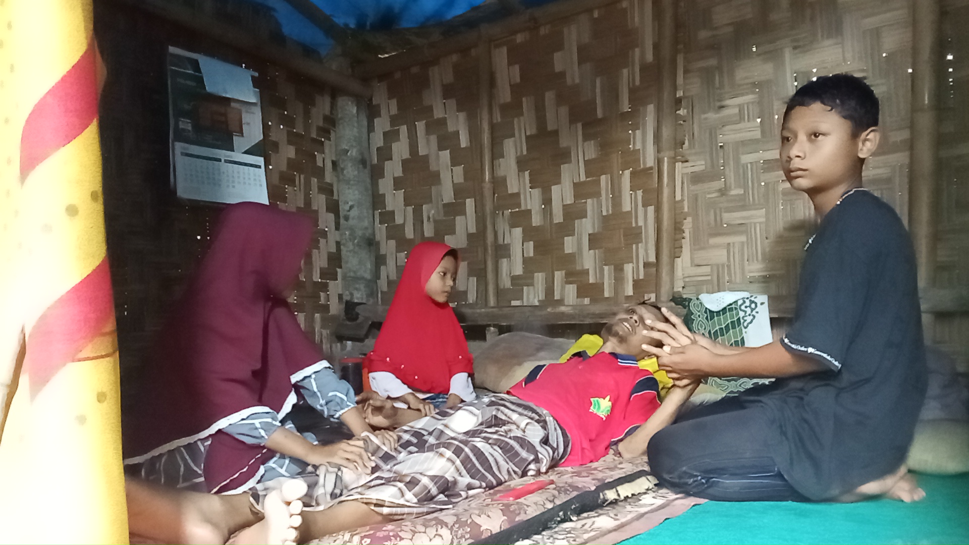 Ibunya meninggal karena komplikasi dan kini ayahnya terbaring sakit menderita lambung akut, tubuh semakin kurus.😥