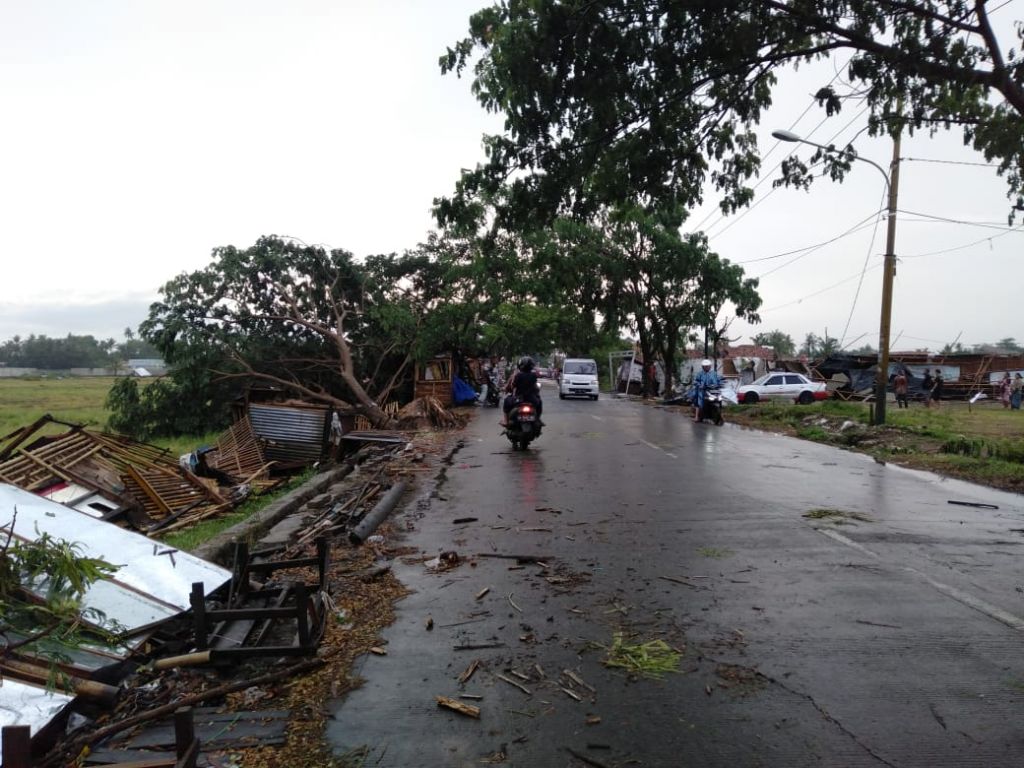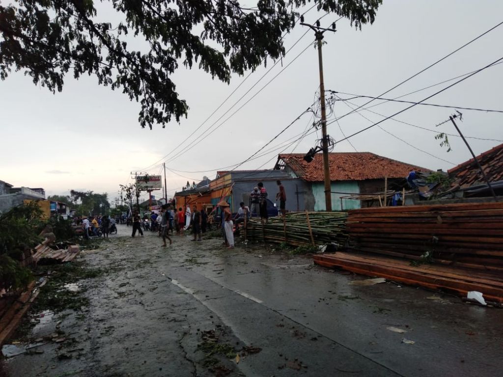 Beberapa warga lain tampak bergotong-royong membereskan pohon-pohon yang tumbang agar tidak mengganggu jalan.
