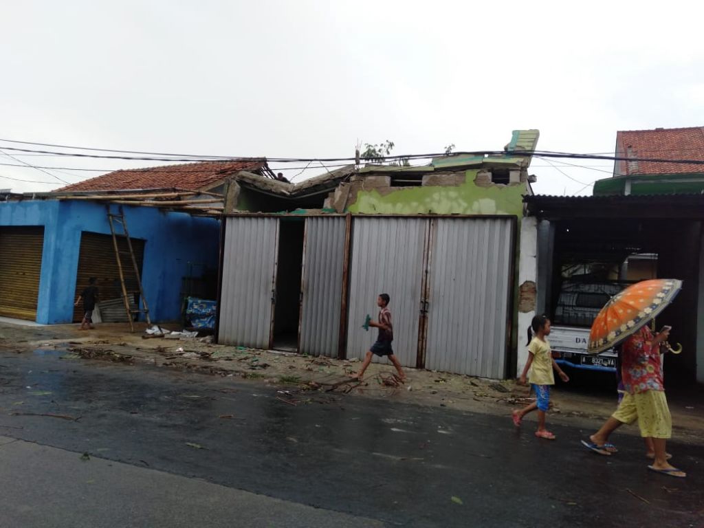Puluhan rumah di Kecamatan Mauk, Tangerang, porak-poranda akibat angin puting beliung disertai hujan deras yang terjadi kamis siang (12/12).