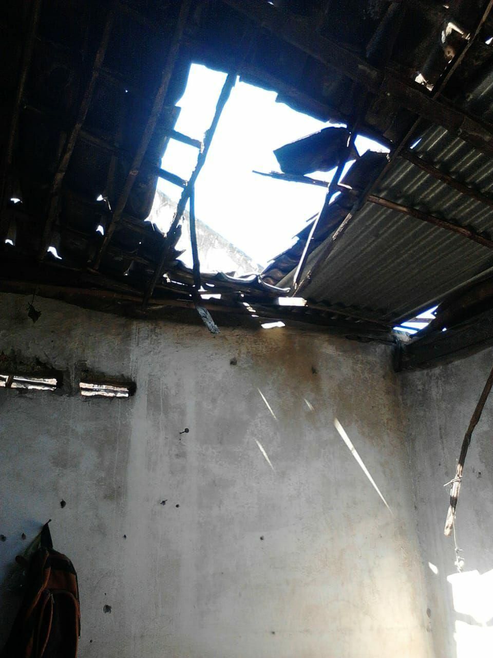 Atap rumah hampir roboh, sebagian kayunya sudah lapuk, dan sebagian gentengnya sudah berjatuhan.