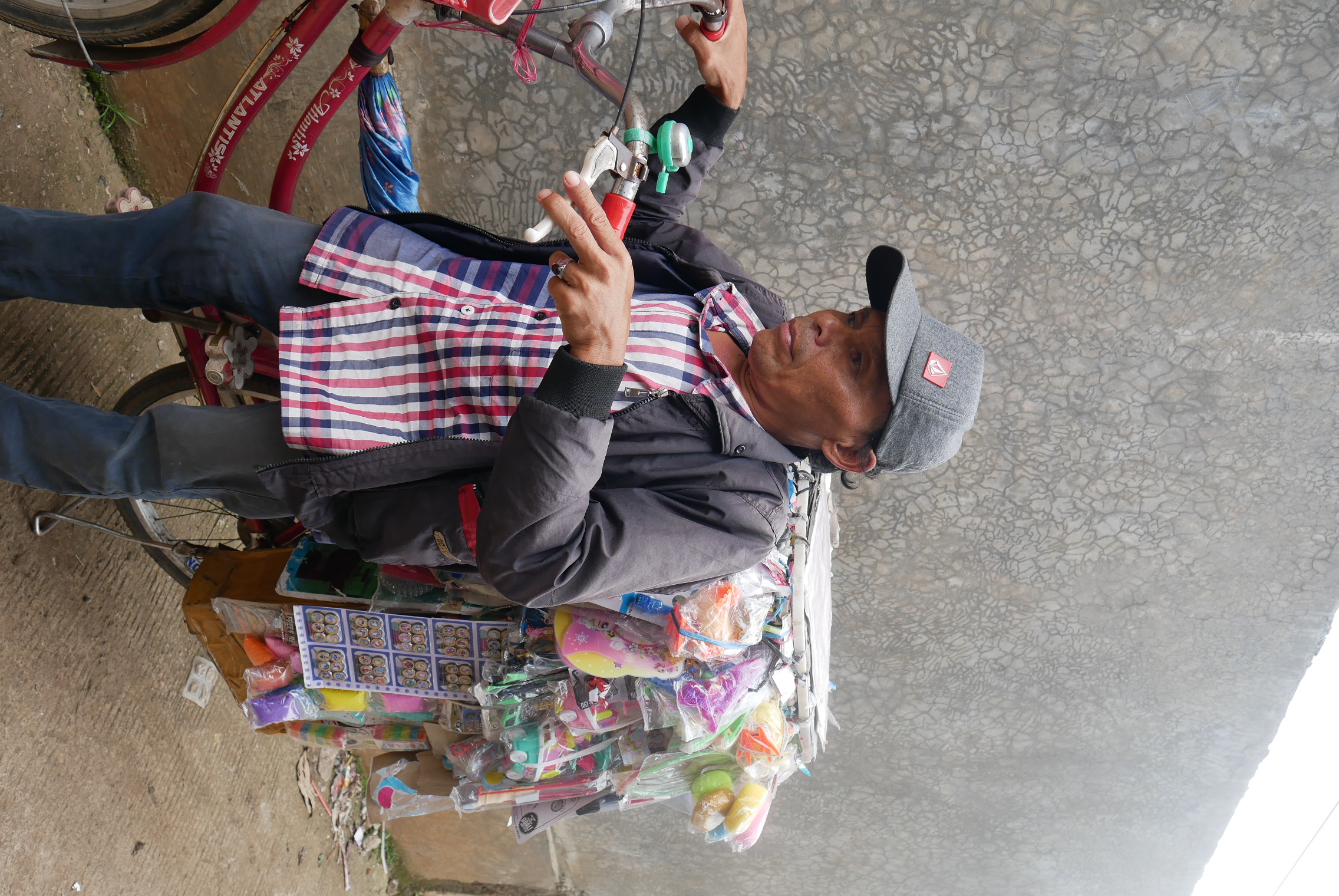Hasil dari jualan yang didapatkan paling besar hanya Rp75.000, belum dipotong modal dan makan siang. Jika musim libur sekolah tiba, Pak Masri harus berjuang lebih keras, karena ia harus berkeliling kampung lebih jauh lagi.