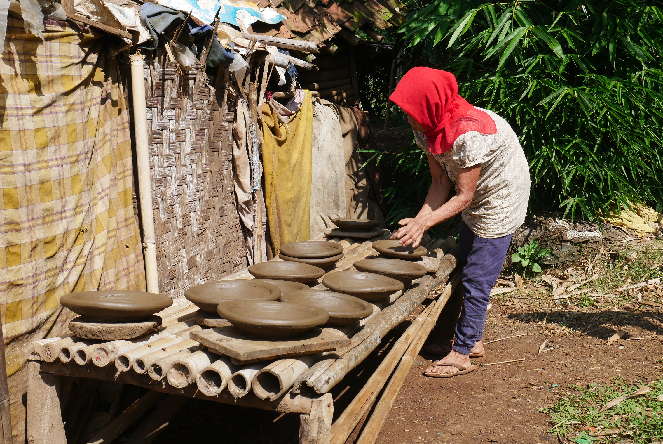 “Sehari cuma bisa buat 12 cobek. Itu juga belum bisa langsung dijual karena harus nunggu kering dulu. Sedangkan untuk makan ga bisa nungguin cobeknya kering biar bisa dijual. Jadi mau gak mau biasanya ngutang dulu ke warung buat kami makan,” ungkap Mak Oyo.