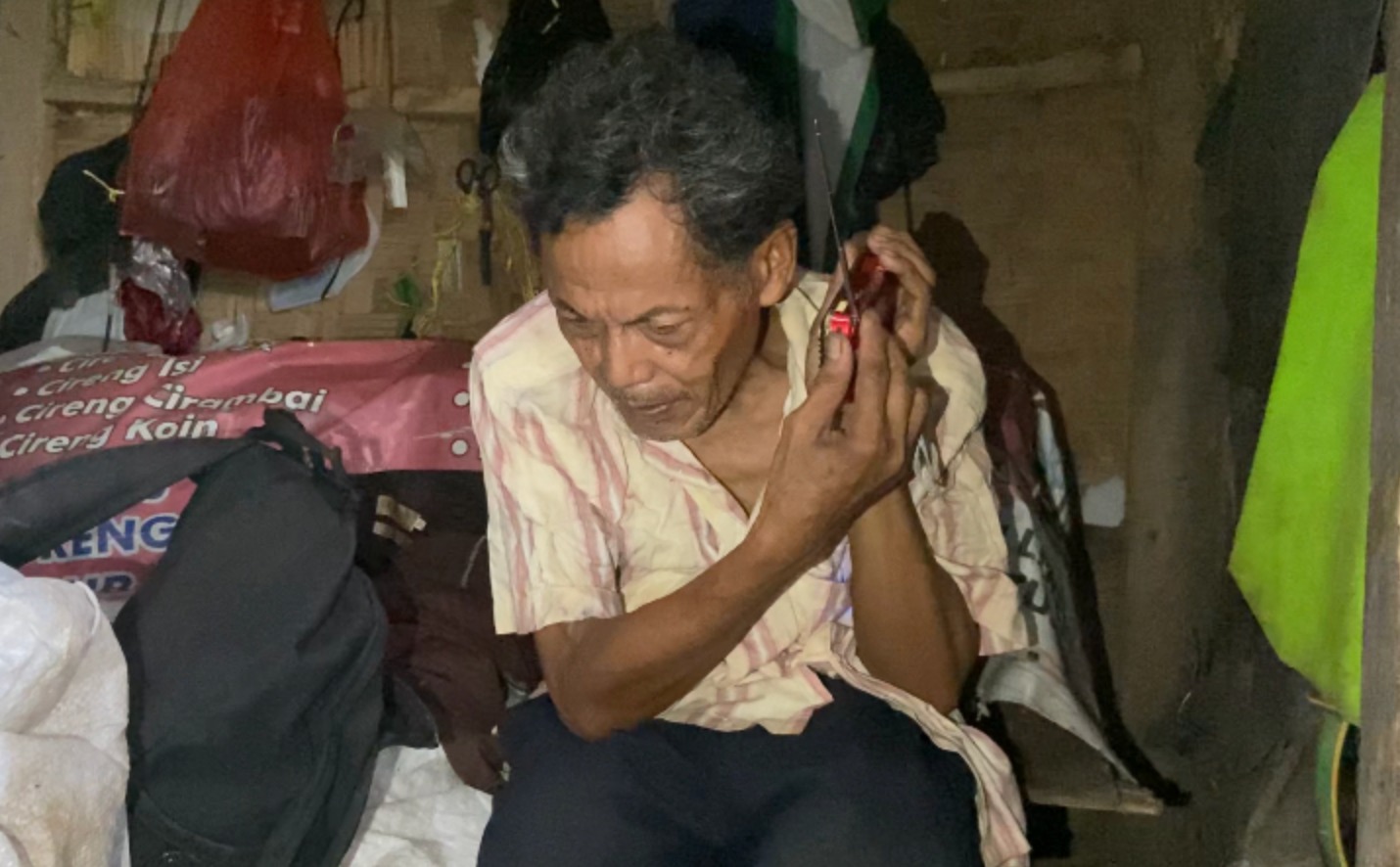 Sedihnya di usianya yang sudah renta Abah harus hidup seorang diri. Istrinya pergi meninggalkan karena faktor ekonomi beberapa tahun lalu. Tak miliki anak, Abah kini hanya tinggal di gubuk kecil buatan tetanggannya yang hanya berukuran 2x2 m.