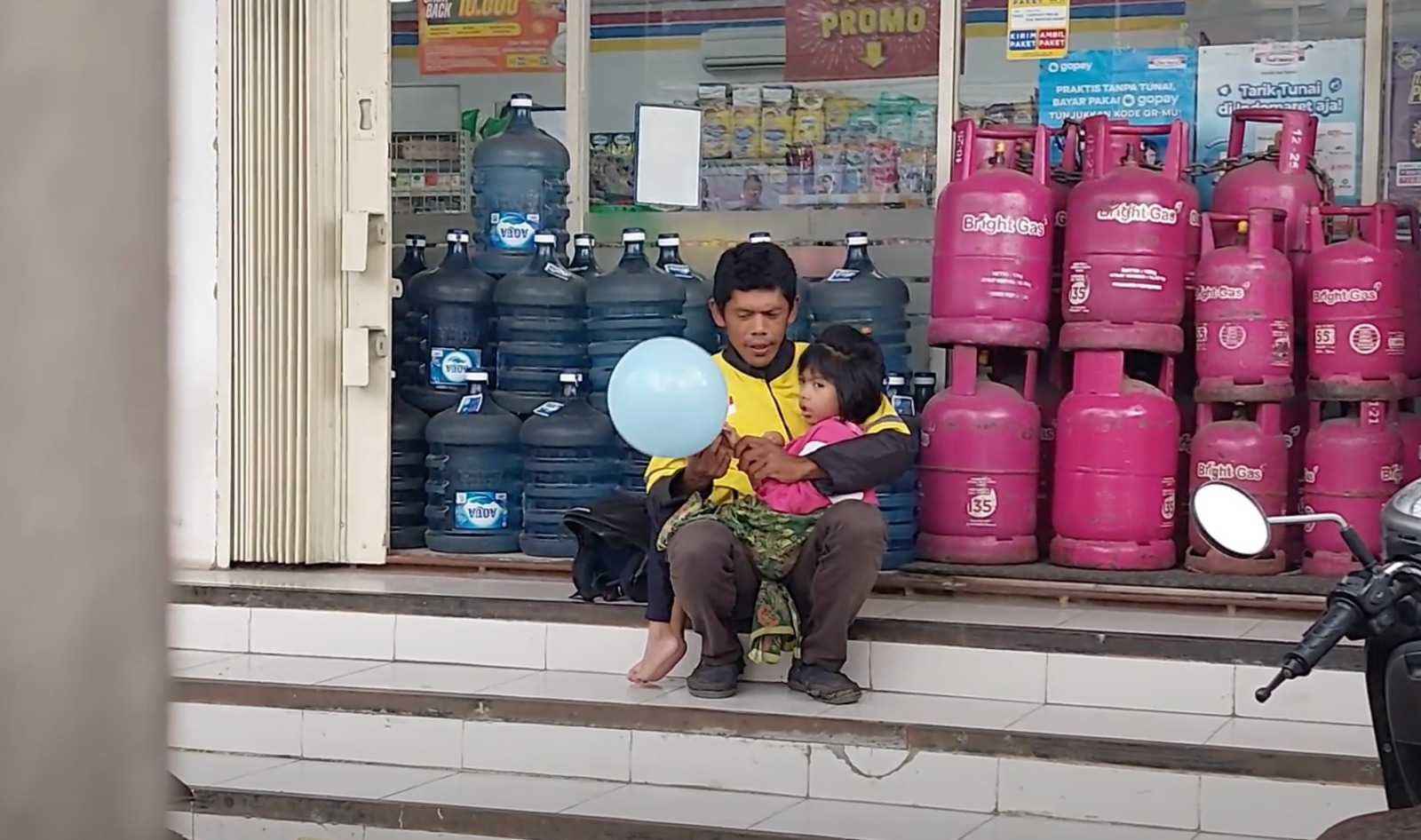 Sosok Ayah hebat yang kutemui tadi sembari menggendong anaknya ini bernama Pak Yanto. Tak perlu ditanyakan lagi seberapa sayang Ayah ini pada anaknya yang bernama Tina.