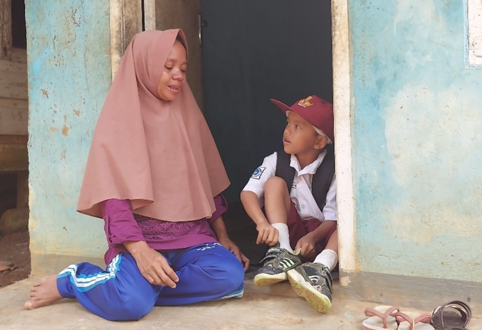 Untuk menambah penghasilan, Ibu kadang menjadi buruh tani, mencari pakan ternak, atau apapun asal tidak jauh dari rumah karena harus menjaga Herman.