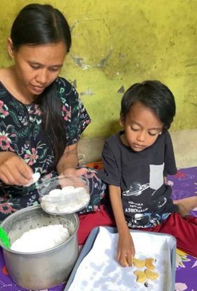 “Azka anak baik banget Mas, dia seneng bantu Ibunya bikin kue, kalau ditinggal keliling jualan dia suka nangis pengen ikut. Bukan saya gak mau ajak, saya gak tega.. Kalau kecapean Azka suka sesek dan lemas,” - Lirih Ibu.