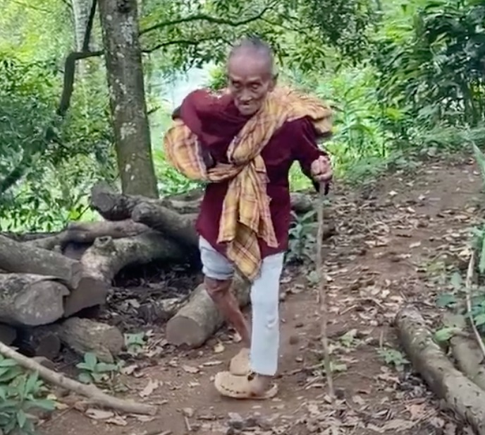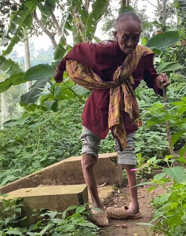 Jalannya tertatih, tongkat dari kayu itu seolah menjadi sahabat sejatinya..