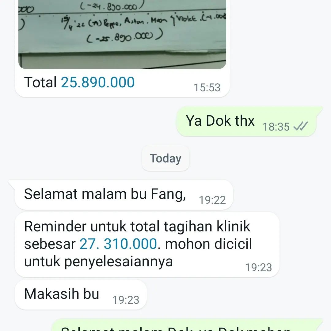 Ternyata, demi kesembuhan anak kaki empat yang terkena penyakit parvo, Ci Fang Fang terpaksa menunda pembayaran tagihan dokter dan kebutuhan obat lainnya karena tidak memiliki cukup uang. Beliau hanya miliki sedikit simpanan yang digunakan untuk memastikan anak kaki empatnya tetap tercukupi makanannya. Hingga saat ini, banyak sekali notifikasi tagihan dari dokter hewan yang terus datang dengan jumlah yang tidak sedikit.