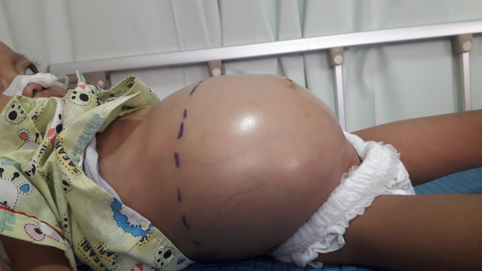 Shela (2 tahun) tak berhenti menjambak rambut sambil menekan perutnya yang kian membesar. Namun tetap saja rasa sakit itu tak kunjung hilang.