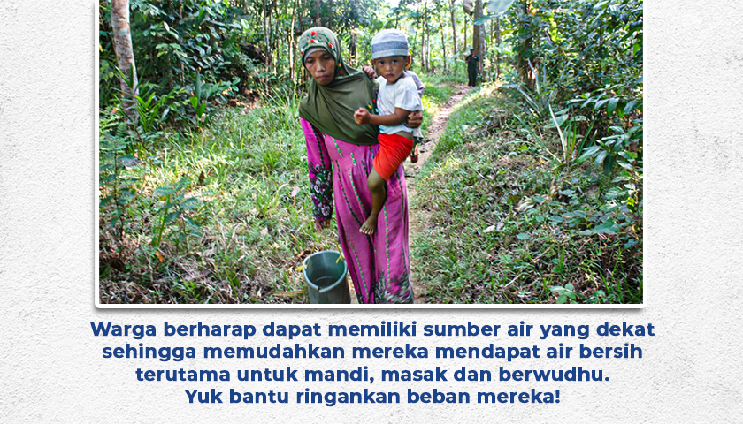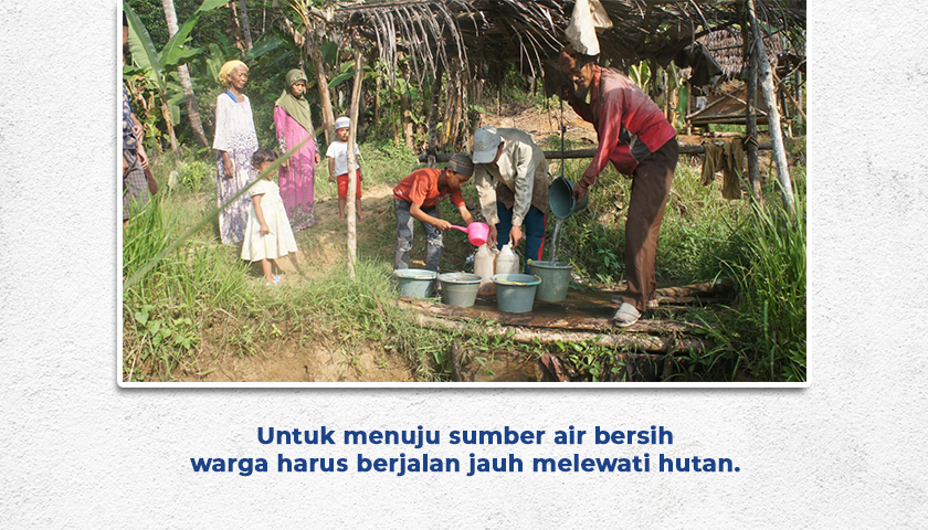 Di musim penghujan saja mereka kerap kebingungan untuk masalah air, apalagi ketika musim kemarau tiba. Sungai yang biasa mereka gunakan hanya terisi disaat musim hujan saja. Sebagai gantinya, setiap musim kemarau ibu dan anak-anak tersebut harus pergi ke sumber air di kampung sebelah yang jaraknya sangat jauh.