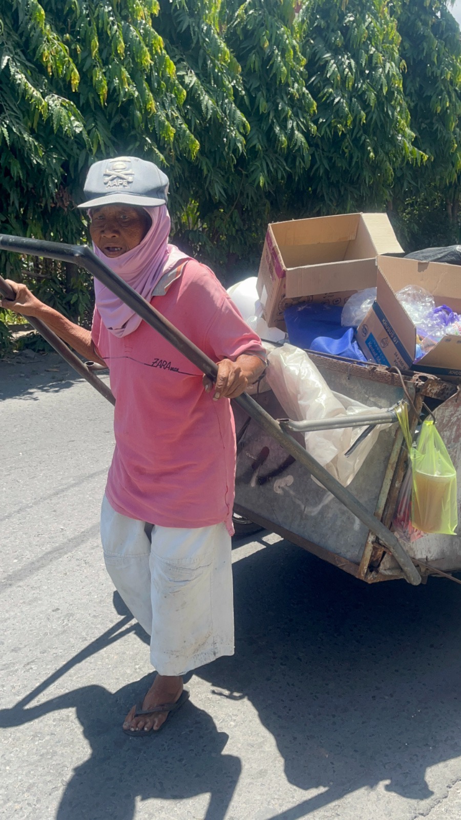 Berjalan tertatih – tatih, dengan kakinya yang sudah sering sakit – sakitan karena penyakit asam urat dan kolestrol. Tubuhnya sampai gemetar karena terlalu berjalan untuk kumpulkan kardus botol minuman atau barang – barang bekas sejenisnya.