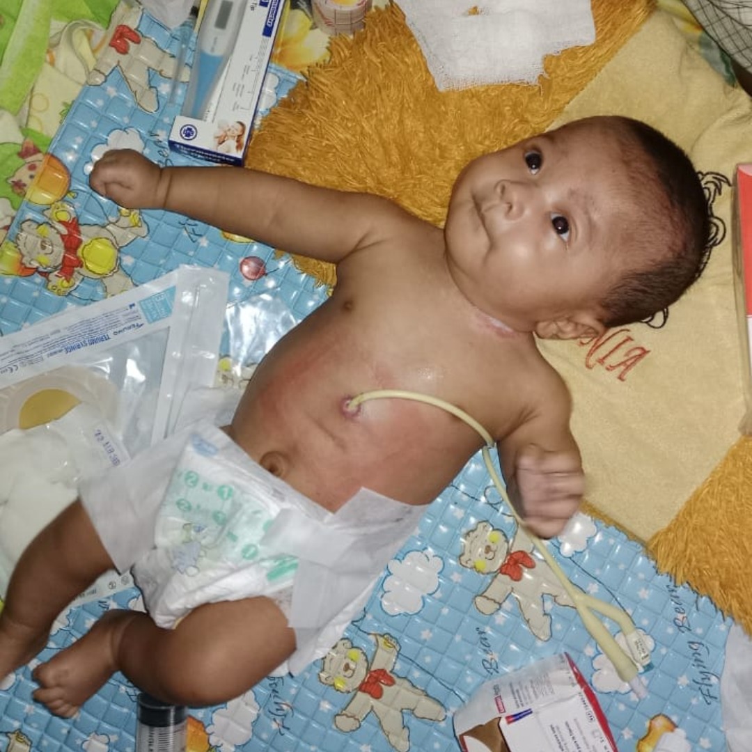 Usia Baru 12 Hari, Atha Jalani Operasi Berat. Dengan berat badan yang turun menjadi hanya 900 gram, Atha menjalani operasi besar pertama yang mencakup Pembuatan lubang di lambung (gastrostomi) agar bisa minum melalui selang, Trakeostomi, pemasangan selang di leher agar bisa bernapas tanpa risiko cairan masuk paru-paru, penutupan lubang antara paru-paru dan lambung agar tidak ada udara masuk ke lambung saat bernapas.