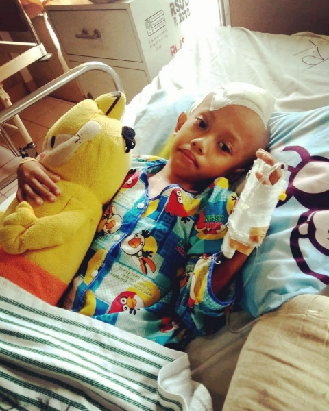 Dian saat ini sudah dalam keadaab sadar, walau setelah operasi ia masih harus menggunakan selang untuk membuang cairan yang ada di kepala. Untuk biaya operasi ditambah biaya perawatan sampai tanggal 05 Desember 2018 saja sudah mencapai Rp. 15.272.841,-.
