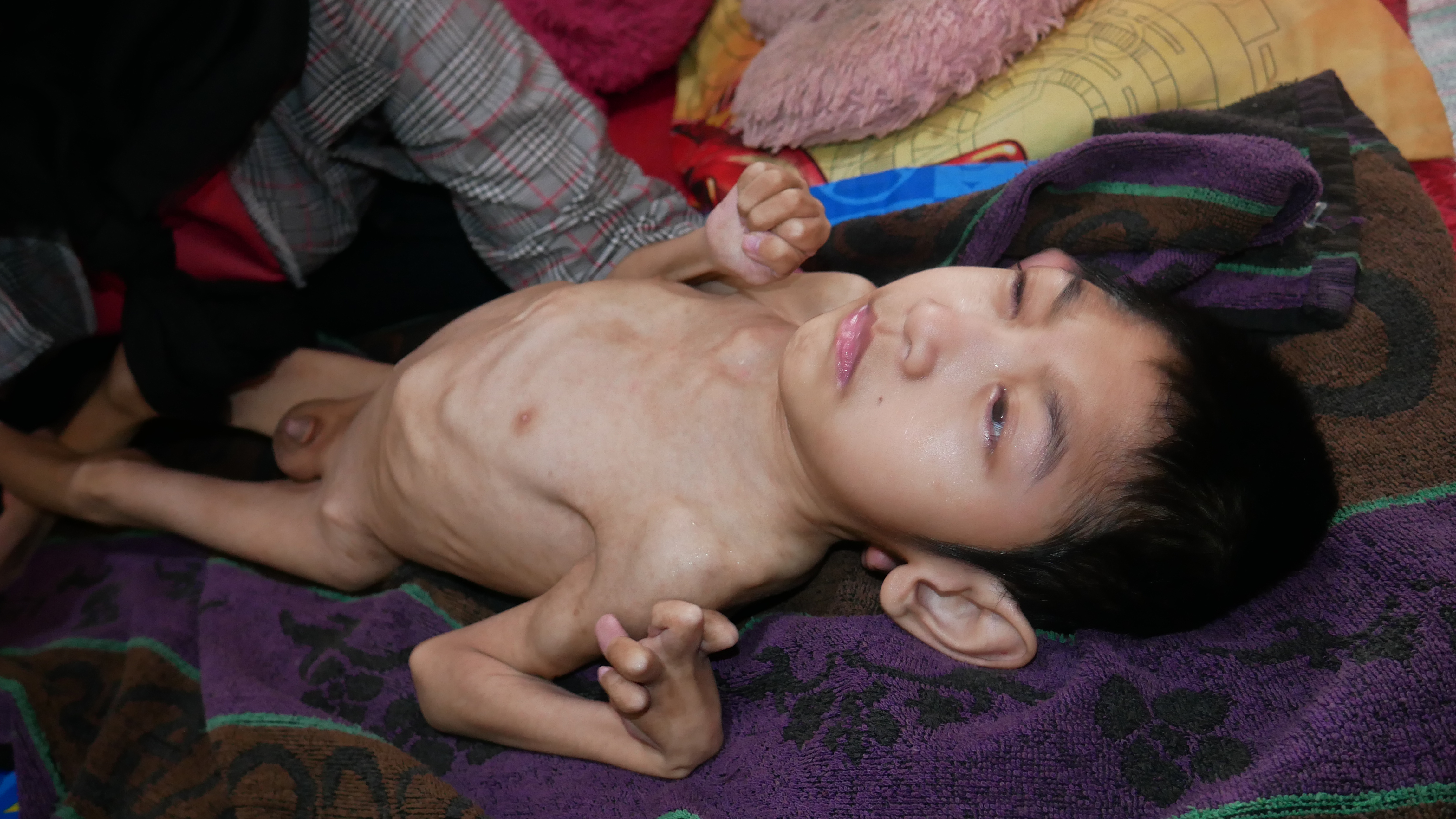 Raditya meski usianya sudah 14 tahun namun badannya sangat kurus dan kecil seperti anak usia 5 tahun yang di sebabkan Stunting, kaki dan tangan nya kurus, belum lagi jari-jari ditangan kanannya hanya bisa mengepal sedangkan jari jari tangan kirinya membengkok, kedua lengannya melipat tidak bisa di luruskan sama seperti kaki nya yg bengkok menyilang tidak bisa diluruskan.