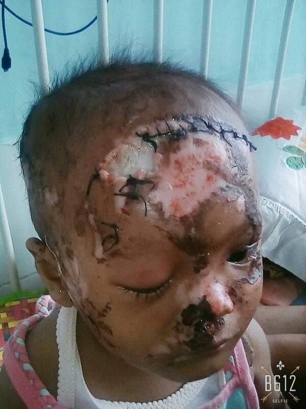 Melda saat ini usianya 1 tahun 9 bulan, ia sedang menjalani perawatan pasca operasi kulit kepala di RSIA Restu Bunda, Bandar Lampung, pada tanggal 6 Nopember 2018. Melda merasa sakit di bagian kepala sejak terjadi kecelakaan yang menimpanya 25 Nopember lalu.