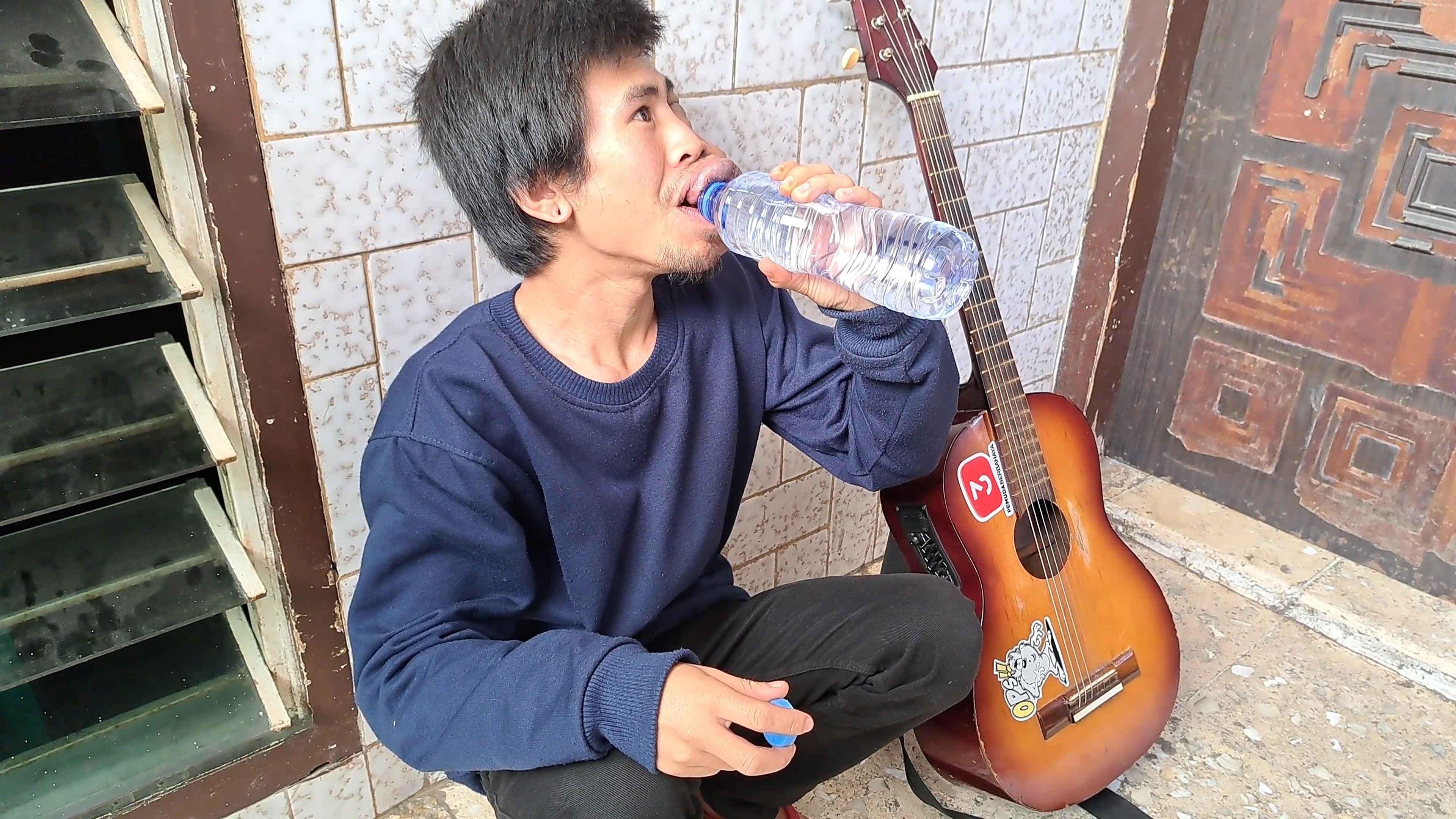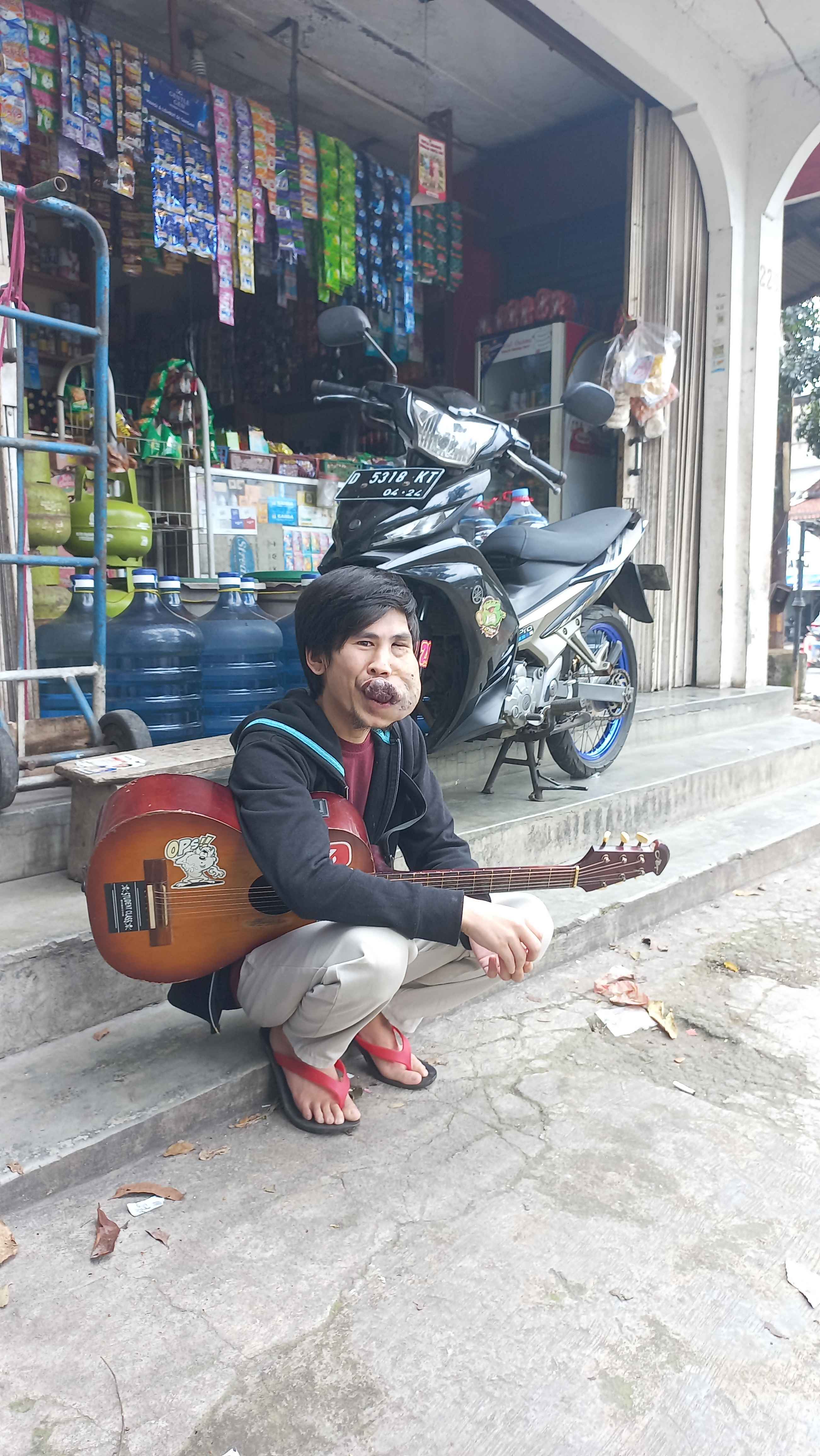 Sedihnya lagi sejak SMP ia terpaksa ga ngelanjutin sekolahnya karna malu dan pengen hidup sendirian dan bekerja sebagai pengamen jalanan. Dengan suara merdunya ia mengais sedikit demi sedikit rejeki yang ia kumpulkan untuk berobat nanti.