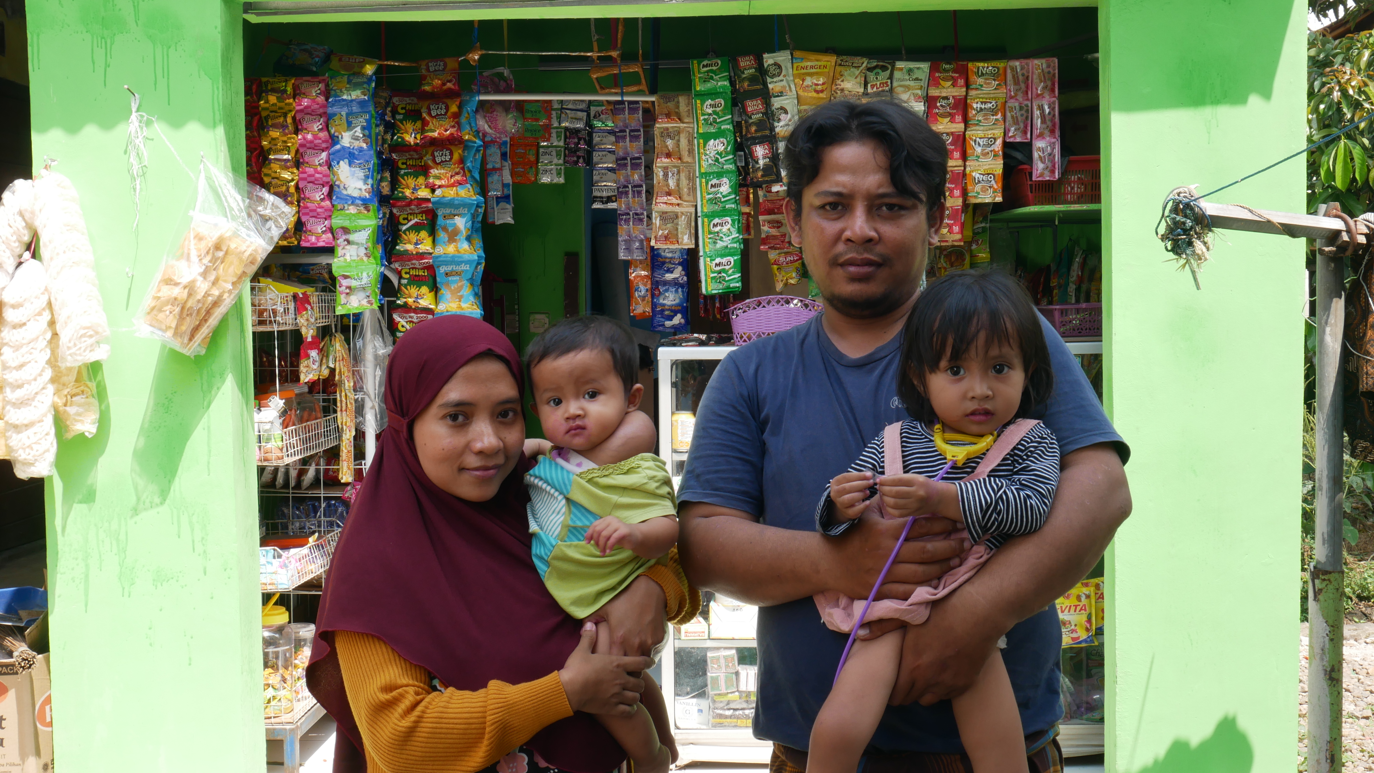 “Allhamdulillah Pak, ada saudara saya yang berbaik hati memberikan modal usaha warung, meski kecil-kecilan tapi sangat membantu sekali. Sehingga, saya juga bisa membantu suami untuk mencari rezeki sekaligus sambil merawat dua anak saya yang masih Balita, terutama Shakilla. Lumayan Pak sehari bisa 25 ribu ”, ujar Bu Dian.