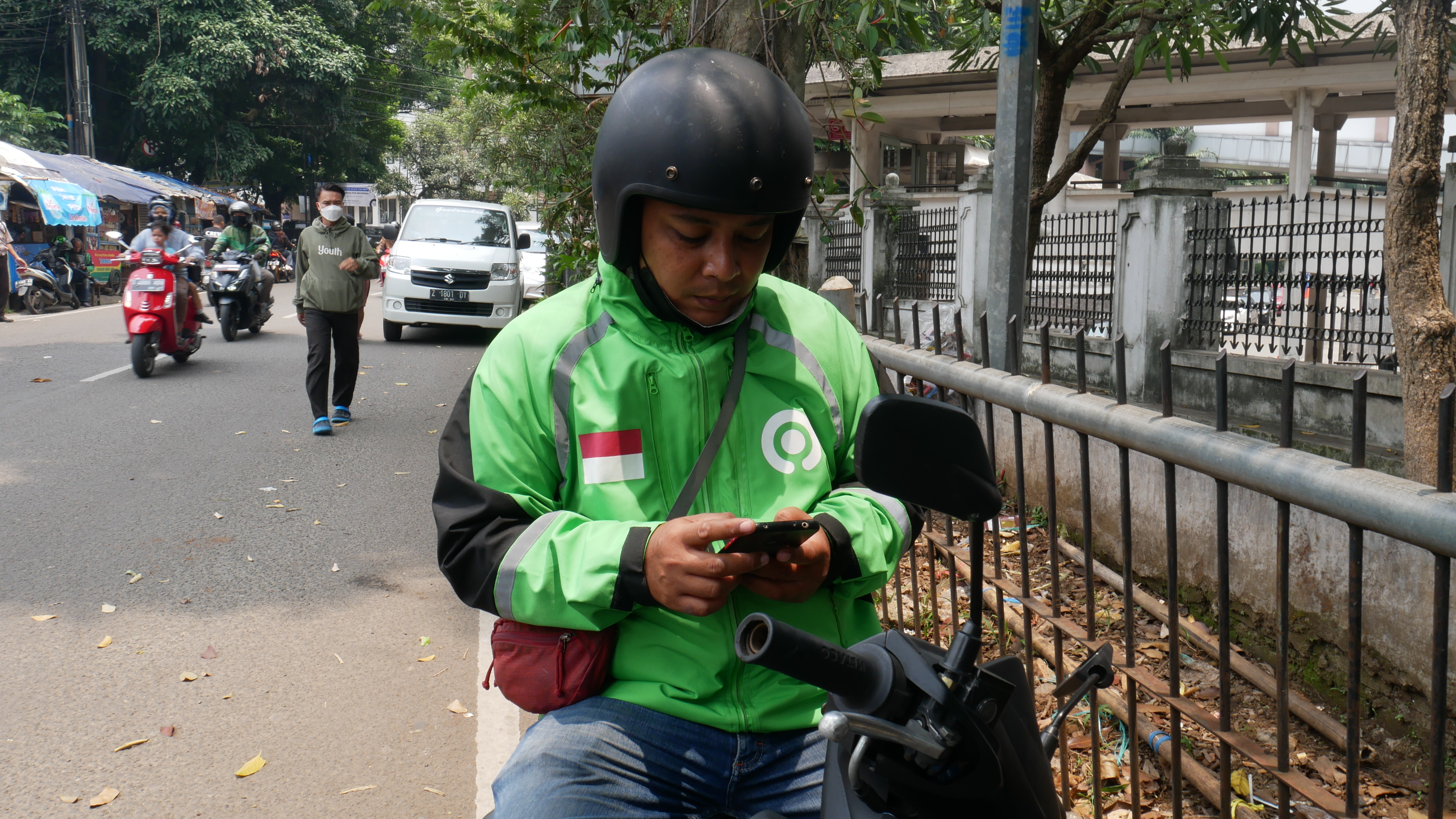 Sempat Pak Yusuf berhenti mencari penumpang karena handphone yang biasa digunakan untuk mencari nafkah terjatuh.