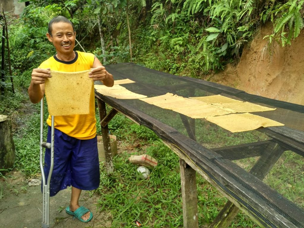 “Bersyukur sekali tumor kaki saya sekarang sudah sembuh meski harus dipotong, tapi saya berdoa semoga kelak Istri saya juga bisa sembuh, biar bisa jualan kerupuk lagi sama-sama”, ungkap pak Sanuri.