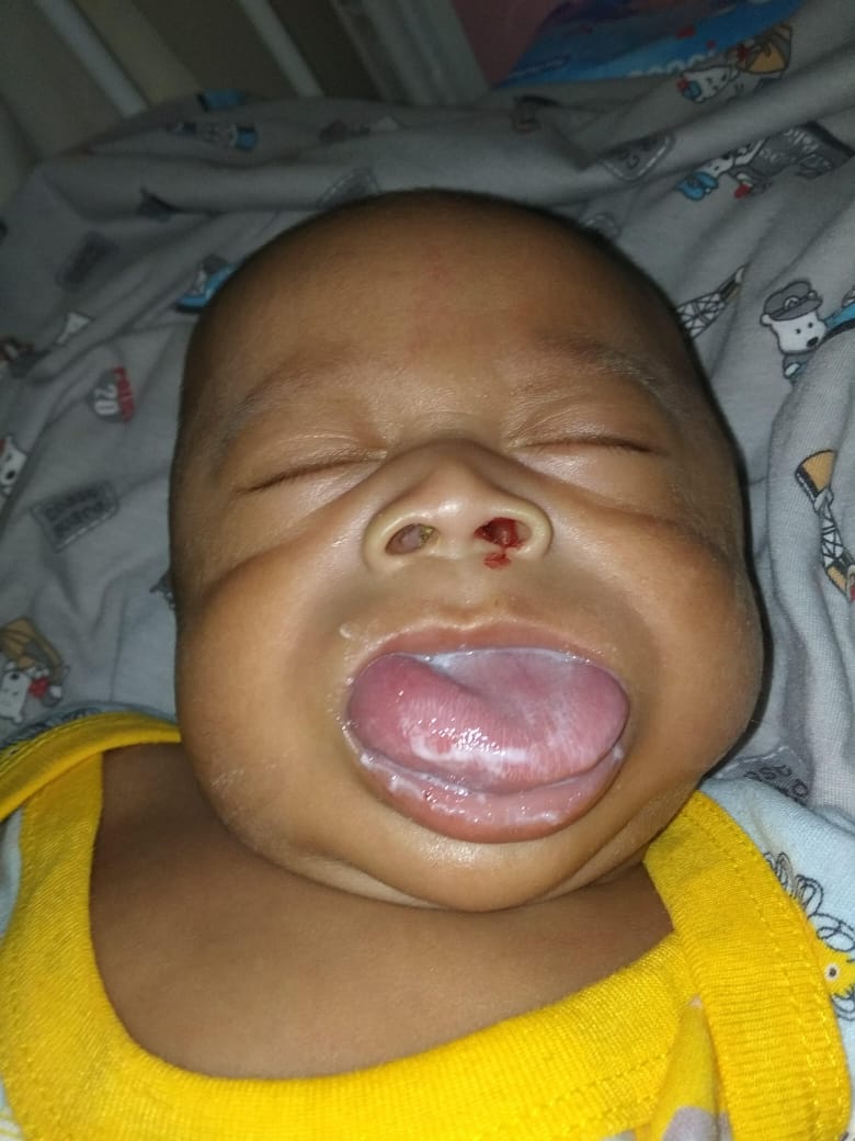 Awalnya Ilham terlihat aneh tidak seperti anak yang lainnya lidahnya menjulur keluar. Namun kian hari semakin besar dan membengkak sampai sekarang.