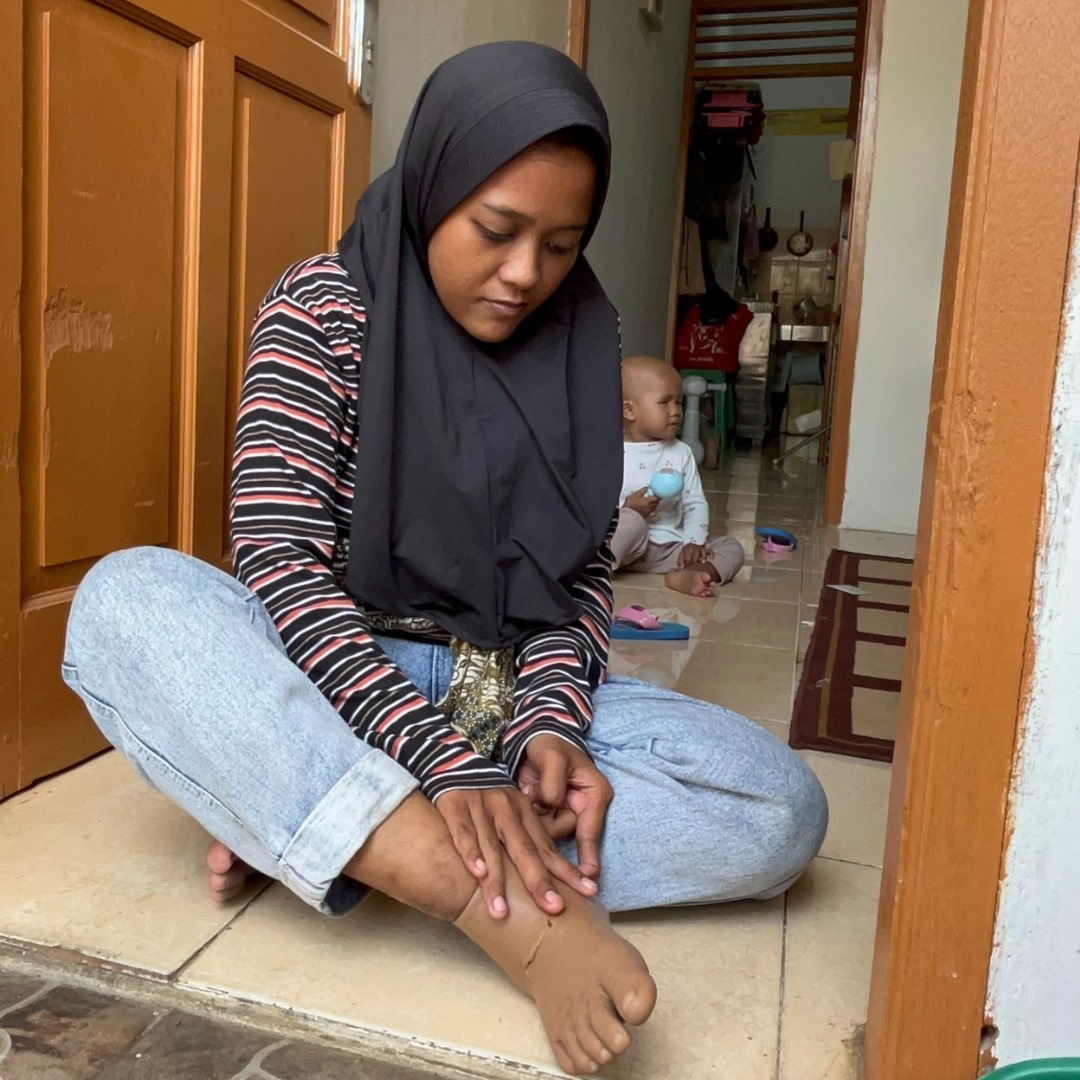 Meskipun sebelah kakinya telah diamputasi, ia tetap menggendong dua buah hatinya, Haflasea (2 tahun) dan Hafizhan (7 bulan), yang sedang berjuang melawan kanker mata stadium 4. Setiap minggu, mereka harus menempuh perjalanan jauh ke rumah sakit menggunakan angkot dan busway menuju rumah sakit, demi satu harapan kesembuhan anak-anaknya.