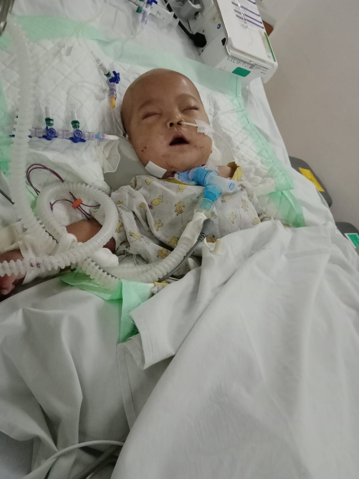 Hidupnya bergantung pada ventilator dan Dokter menyampaikan bahwa kemungkinan hidup Tristan tinggal 20 %.