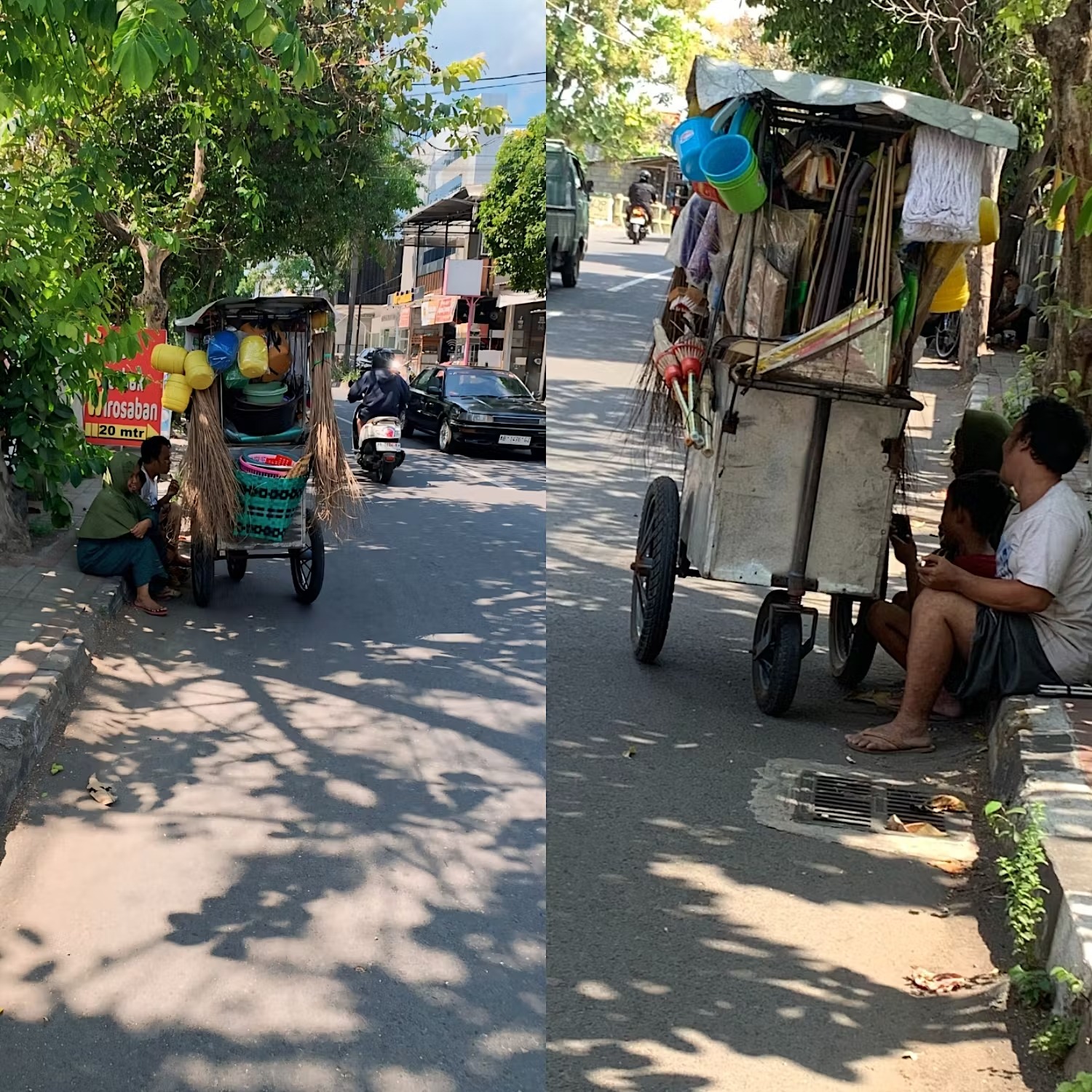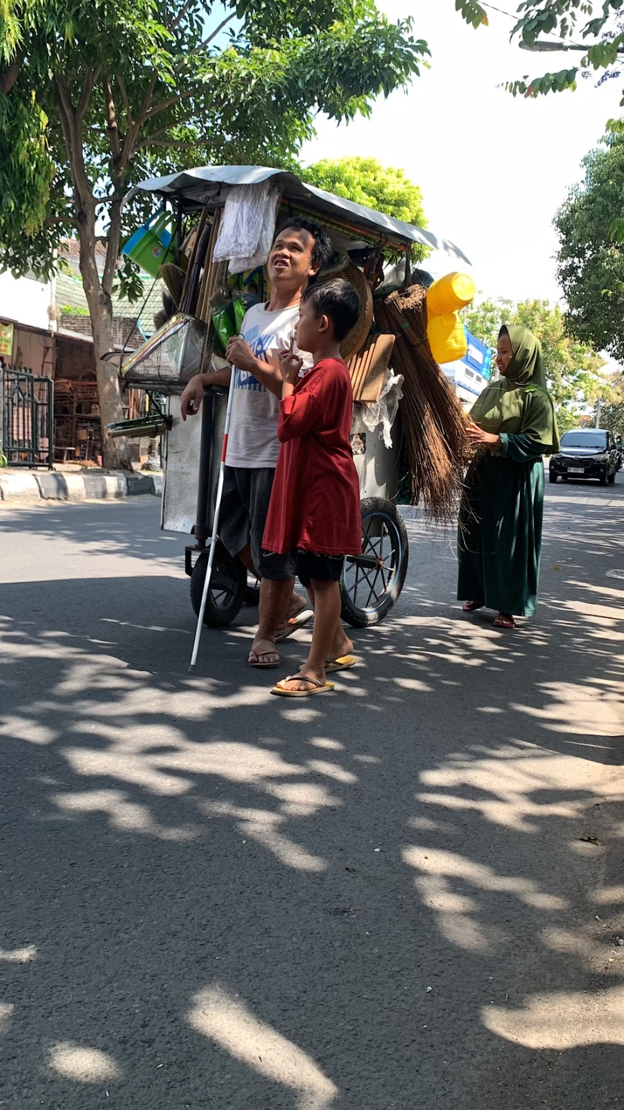 “Saya senang ikut berjualan bapak dan ibu bisa membantu dan menemani mereka, sambil saya yang menuntun bapak di depan gerobak agar lebih aman,. Karena jalan raya ramai sekali jika siang hari” Ucap Ikhsan