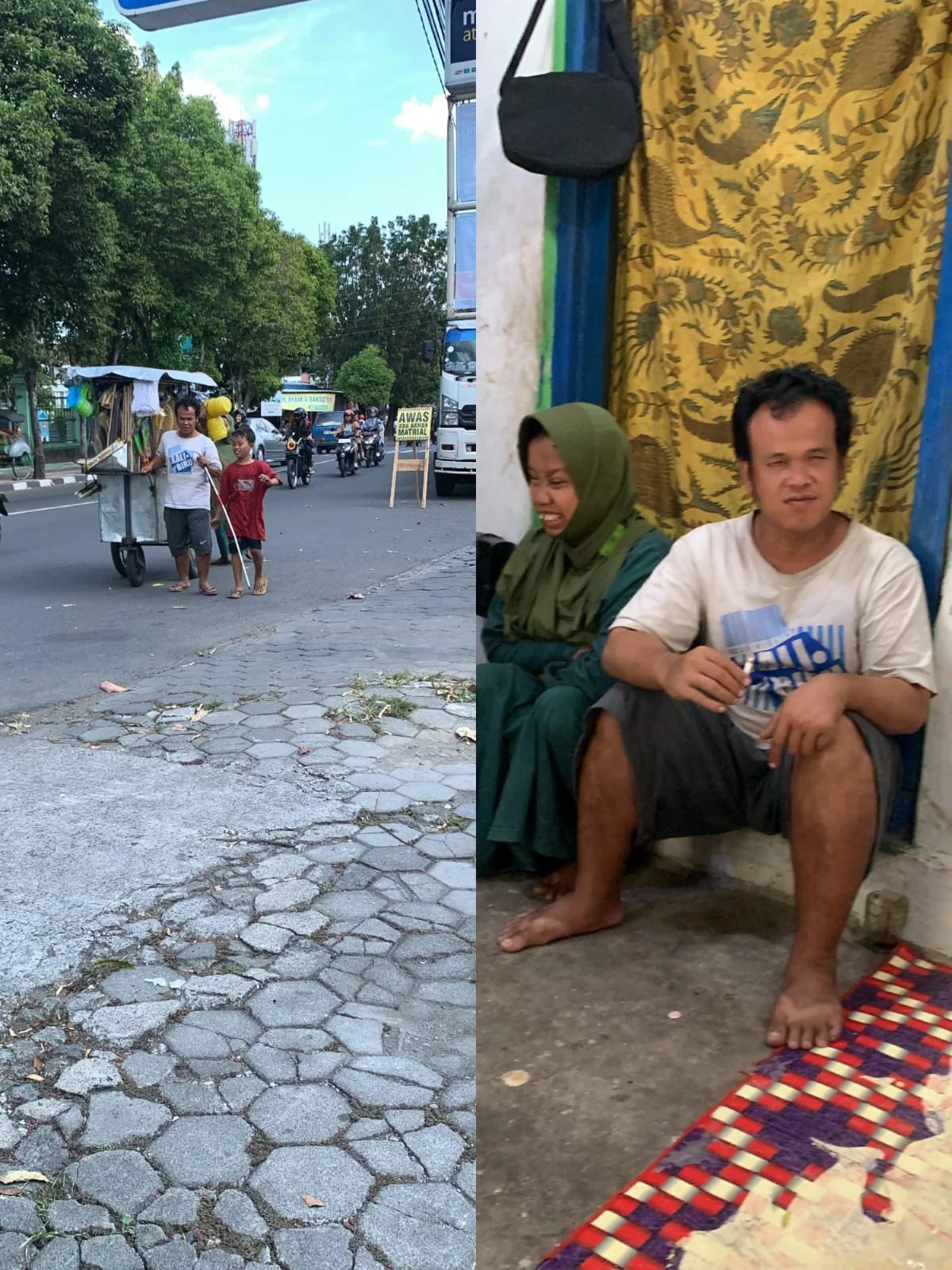 Sembari duduk ditrotoar jalan raya Pak Kharifin beserta Ibu Wahyuni Istrinya dan anaknya yang masih berusia 10 Tahun. Beliau merenung dan meratapi nasib yang malang sambil menunggu Pembeli datang.