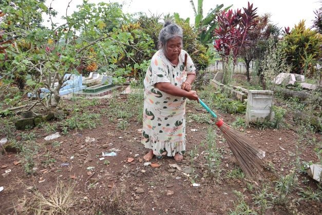 Tak ingin mengandalkan bantuan tetangga, setiap hari Mak Yayah membersihkan area pemakaman. Upah yang diterima Mak Yayah hanya dari pengunjung yang datang ke makam. Itupun alakadarnya dan tidak setiap hari.