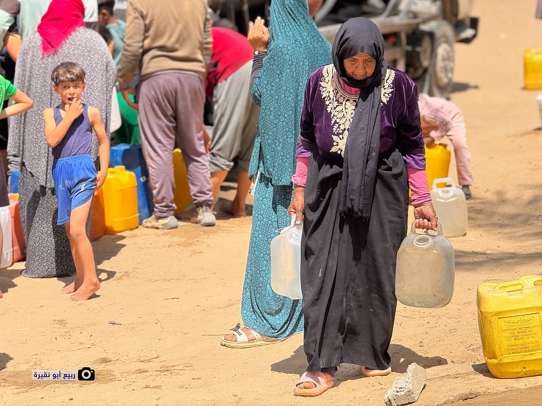 Dengan pikiran yang berat dan kepedihan yang mendalam... Anak-anak di Gaza mencoba untuk mengisi botol air, wanita menghabiskan berjam-jam mencari setetes air, pria membawa kehidupan dalam ember tertusuk dengan rasa sakit.