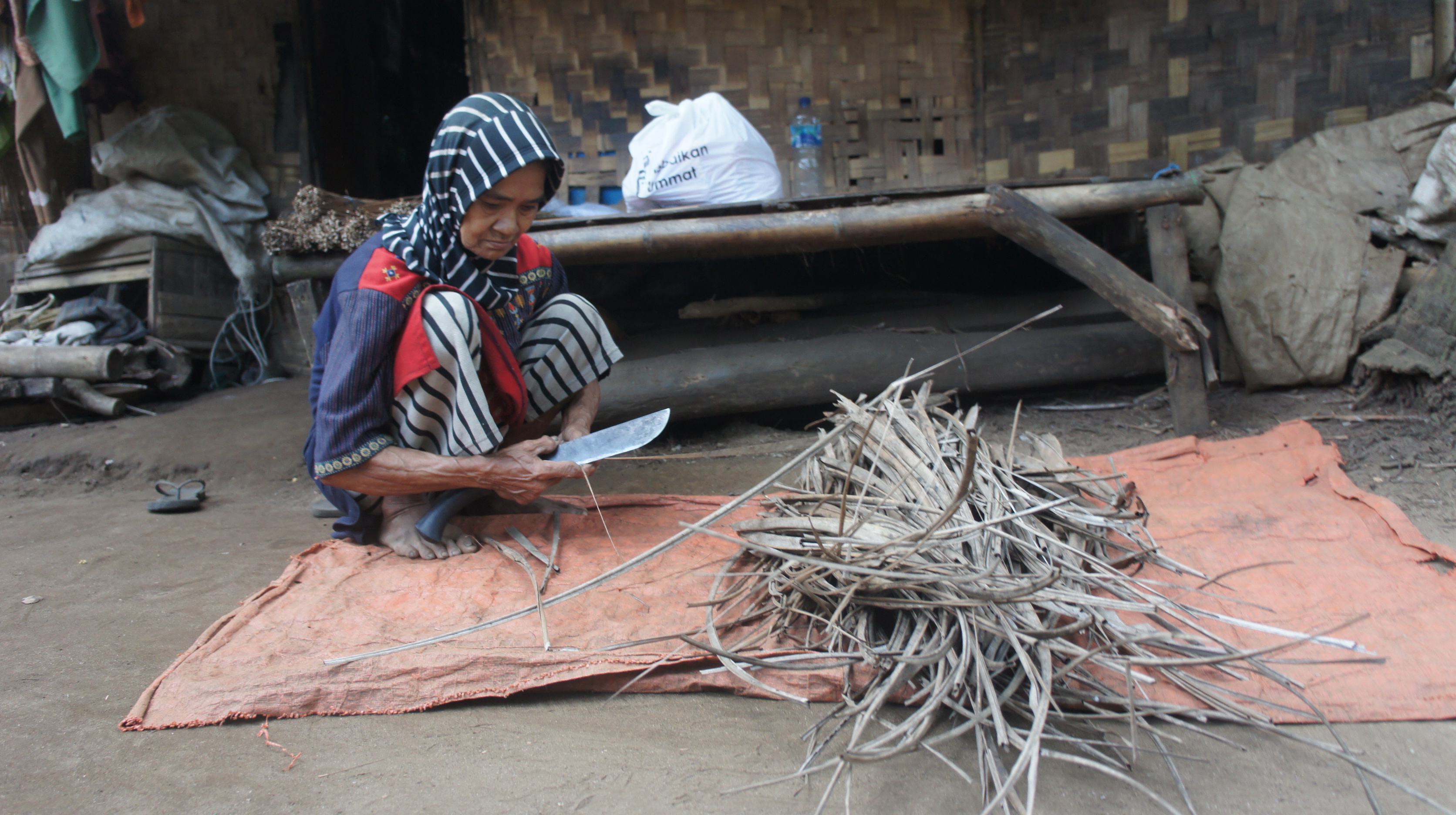 Harga sapu lidi yang Mak Sanah buat dijual Rp2.000 per ikat. Dalam satu minggu, Mak Sanah hanya bisa buat 3 ikat sapu lidi. Kurang lebih penghasilan Mak Sanah hanya Rp6.000 per minggu.