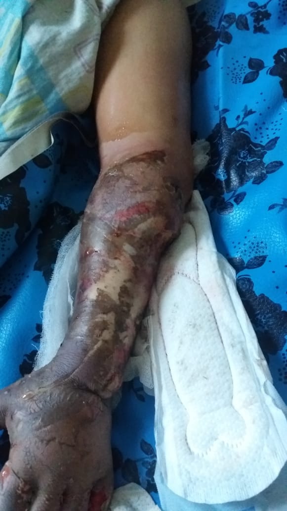 Saat itu darah mengalir cukup banyak dan keluar tanpa henti. Di duga pembuluh darah yang mengalirkan ke bagian tangan yang terjepit seluruhnya sudah tidak bisa berfungsi, mengakibatkan tangannya mengalami kematian jaringan.
