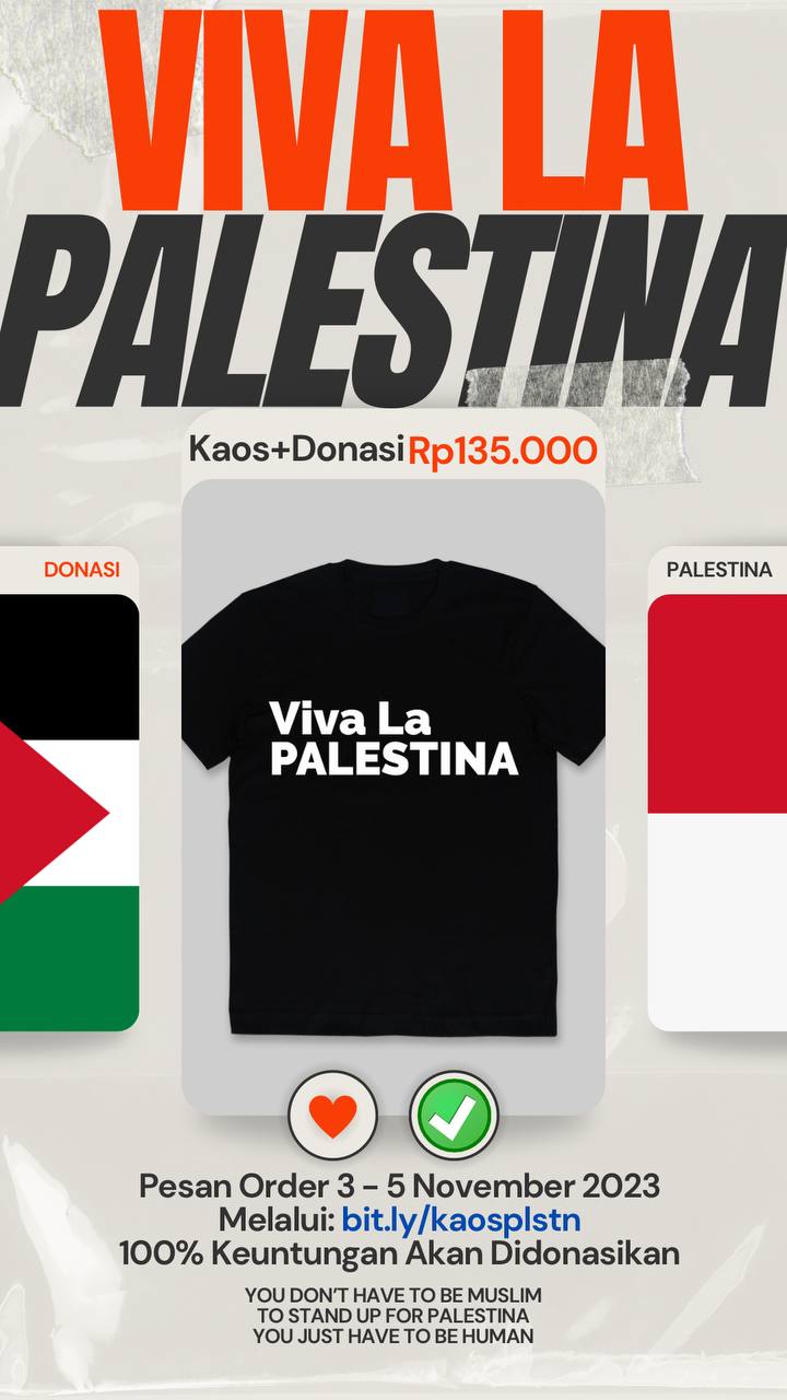 Notes : 100% keuntungan dari penjualan merchant ini akan didonasikan untuk Palestina. Selain itu, kaos yang kamu kenakan akan meningkatkan awareness tentang Palestina bagi orang-orang disekitarmu.