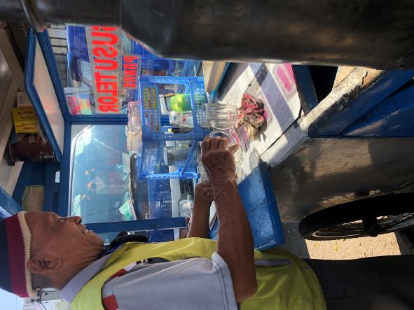 Sejak tahun 1988 Abah Syarif sudah berjualan susu murni keliling. Dulu Abah bisa menjual susu murni lebih dari 10 liter karena situasinya ramai, namun beberapa tahun ke belakang ditambah pandemi covid-19, jualan Abah hanya laku 1,5 – 2 liter dengan penghasilan Rp30.000 per hari.