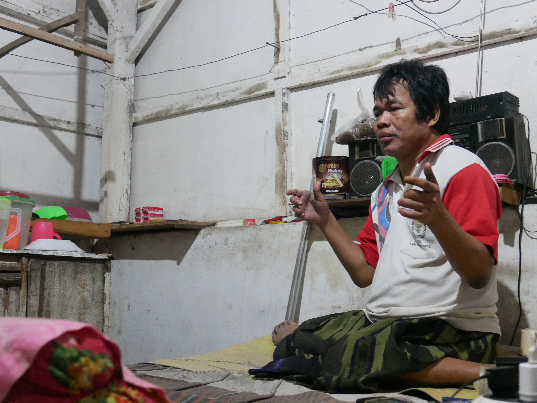 Mengidap kelainan sejak lahir (lumpuh), Pak Basirun (48) harus menempuh jalan berat untuk menghidupi keluarga. Di rumahnya yang sudah tidak layak huni dan bocor, Pak Basirun membuka warung kelontong. Sayang, penghasilan bersihnya hanya 10 ribu per hari.