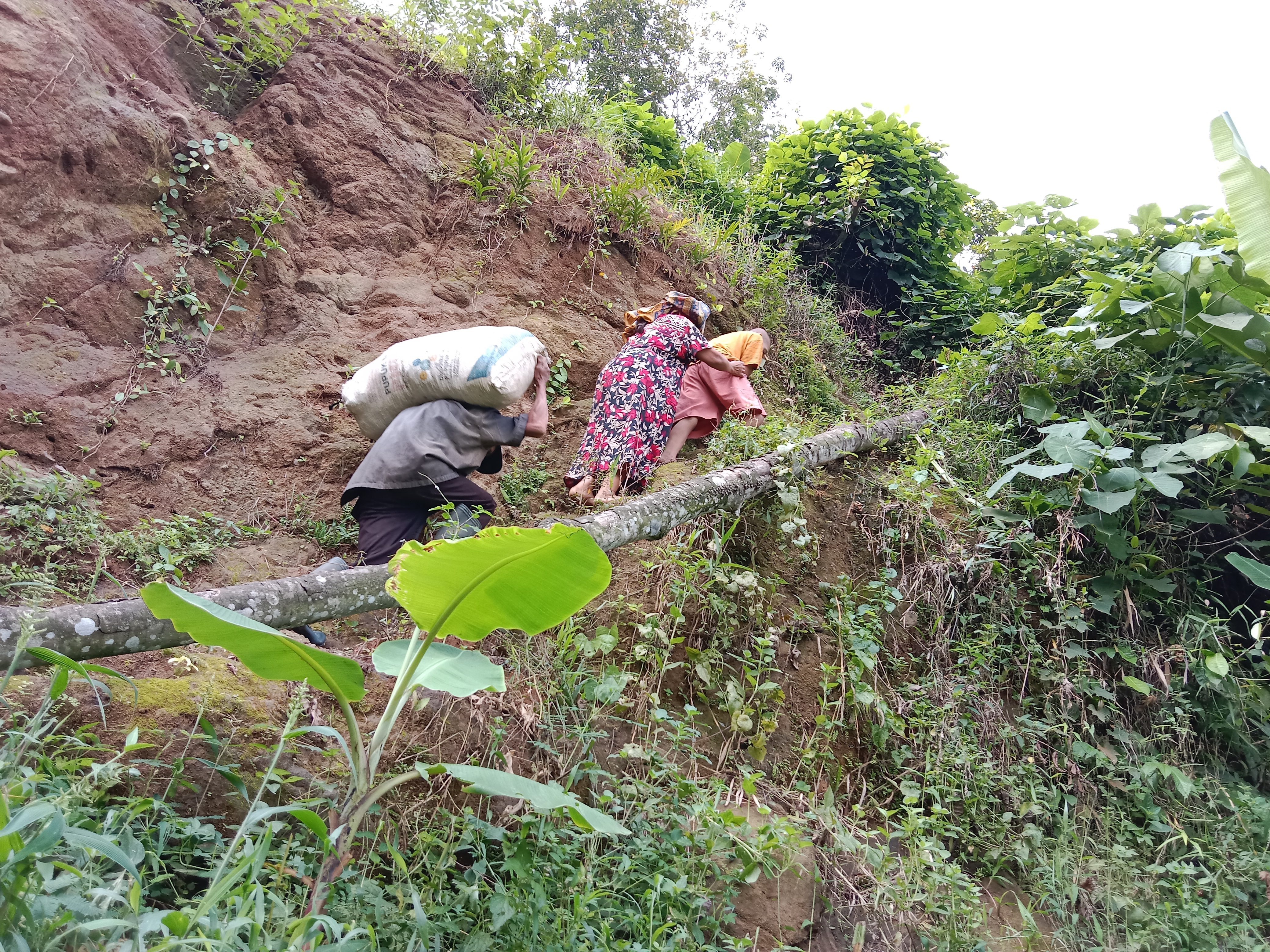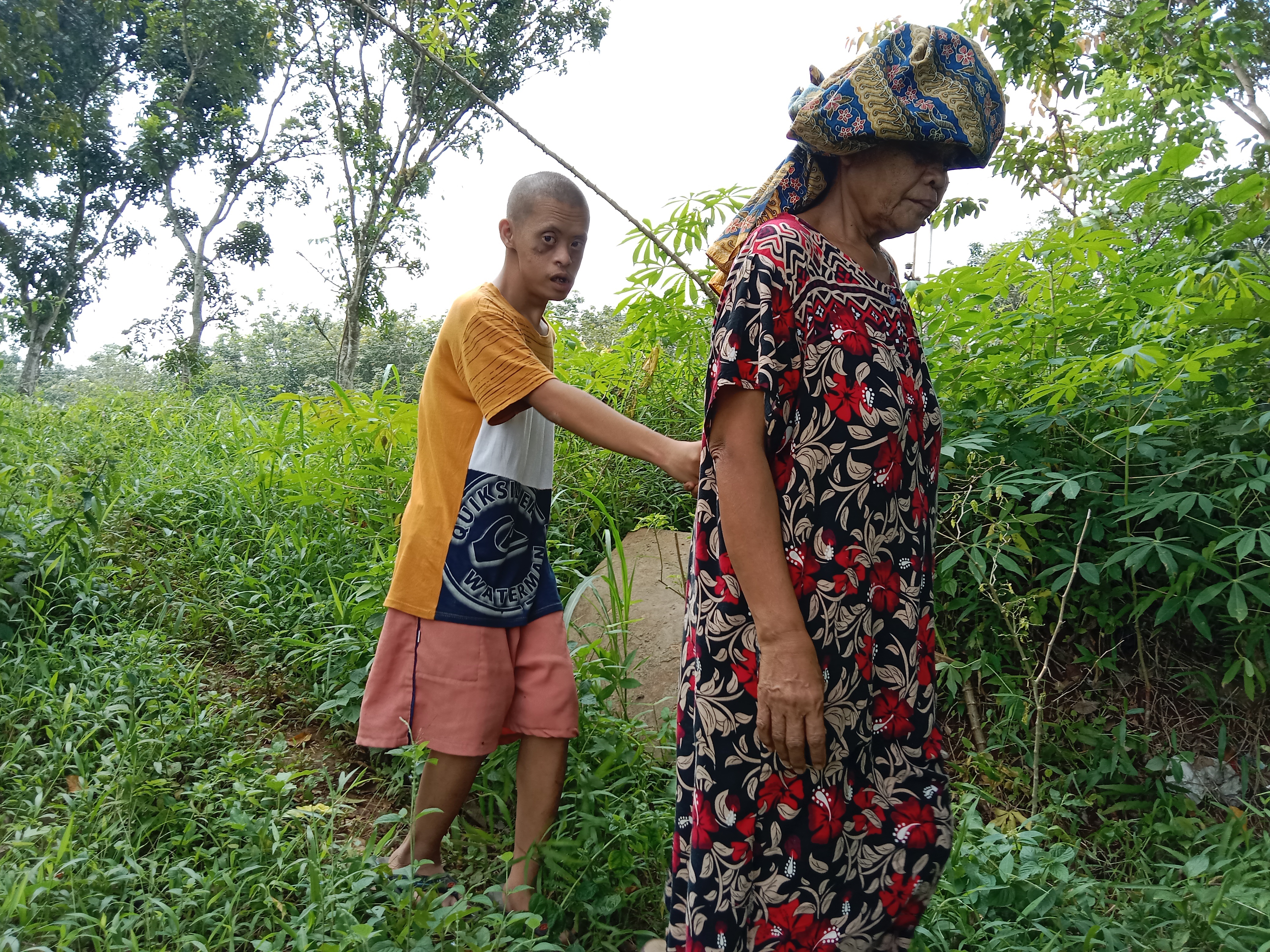 Mak Aisah (64) menceritakan bahwa Yogi tidak bisa ditinggal sendirian di rumah karena kondisinya. Padahal jalan menuju ladang harus menuruni tebing curam dan jurang, jalanan terjal, hingga jarak yang berkilo-kilo meter.
